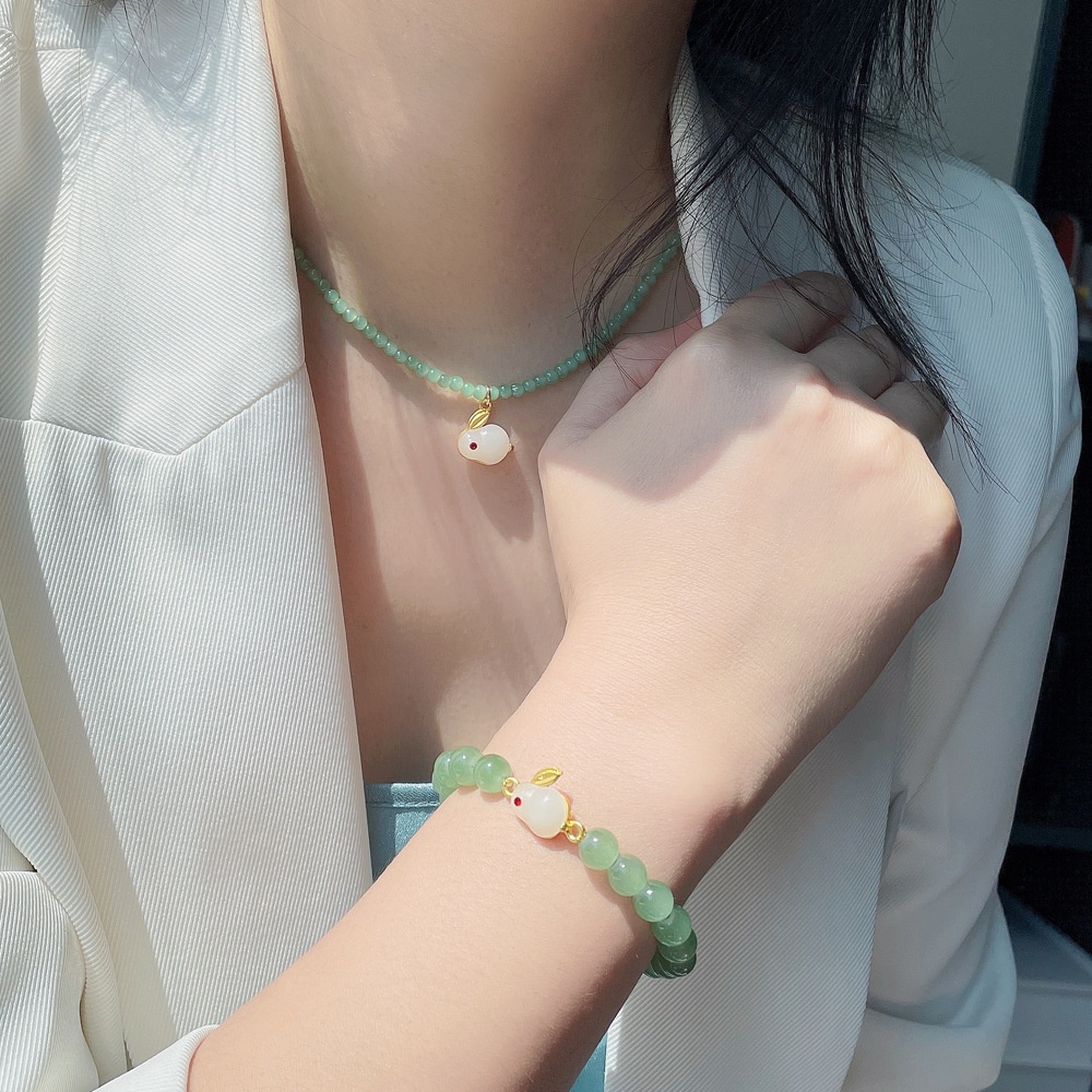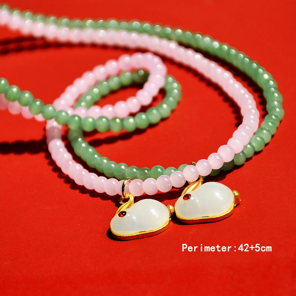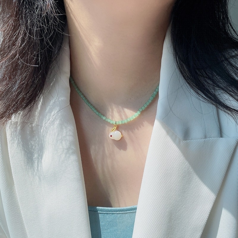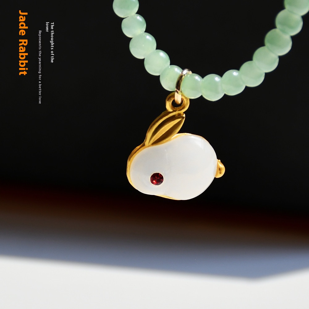 Chinese Year Of The Rabbit Jewelry Beaded Rabbit Necklace Women's Versatile Non-fading Zodiac Pendant For The Year Of The Rabbit Girlfriend Gift