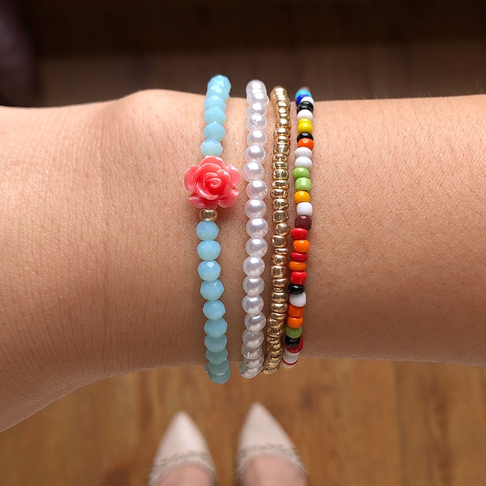 European And American Elastic Rope Rose Crystal Bracelet Female Multi-layer Combination Pearl Millet Bead Bracelet
