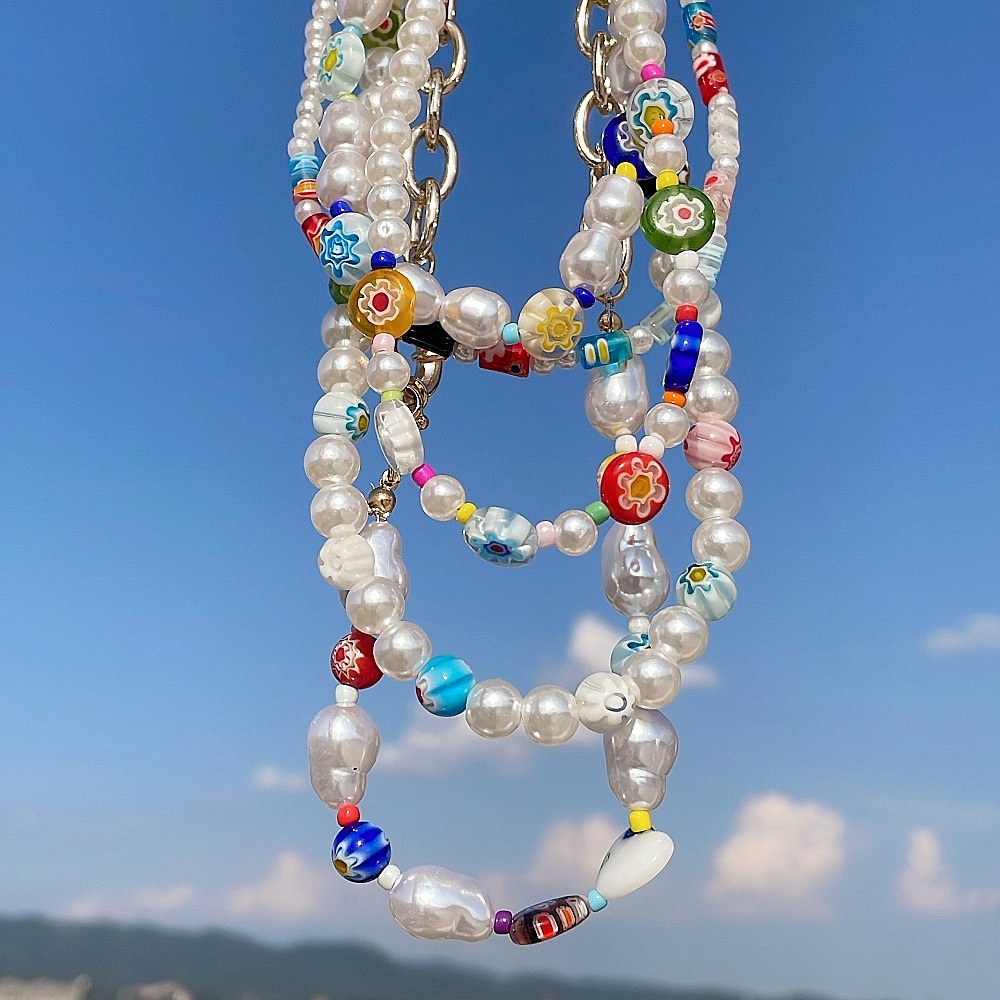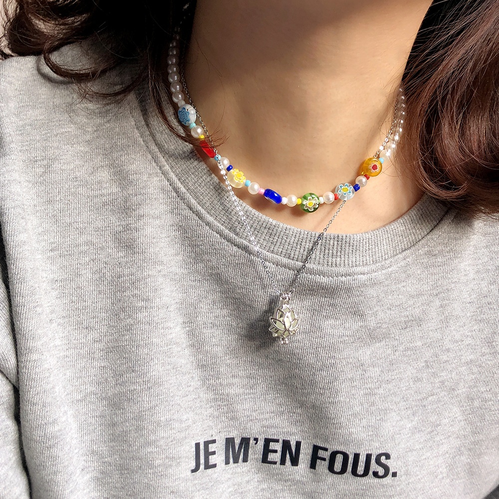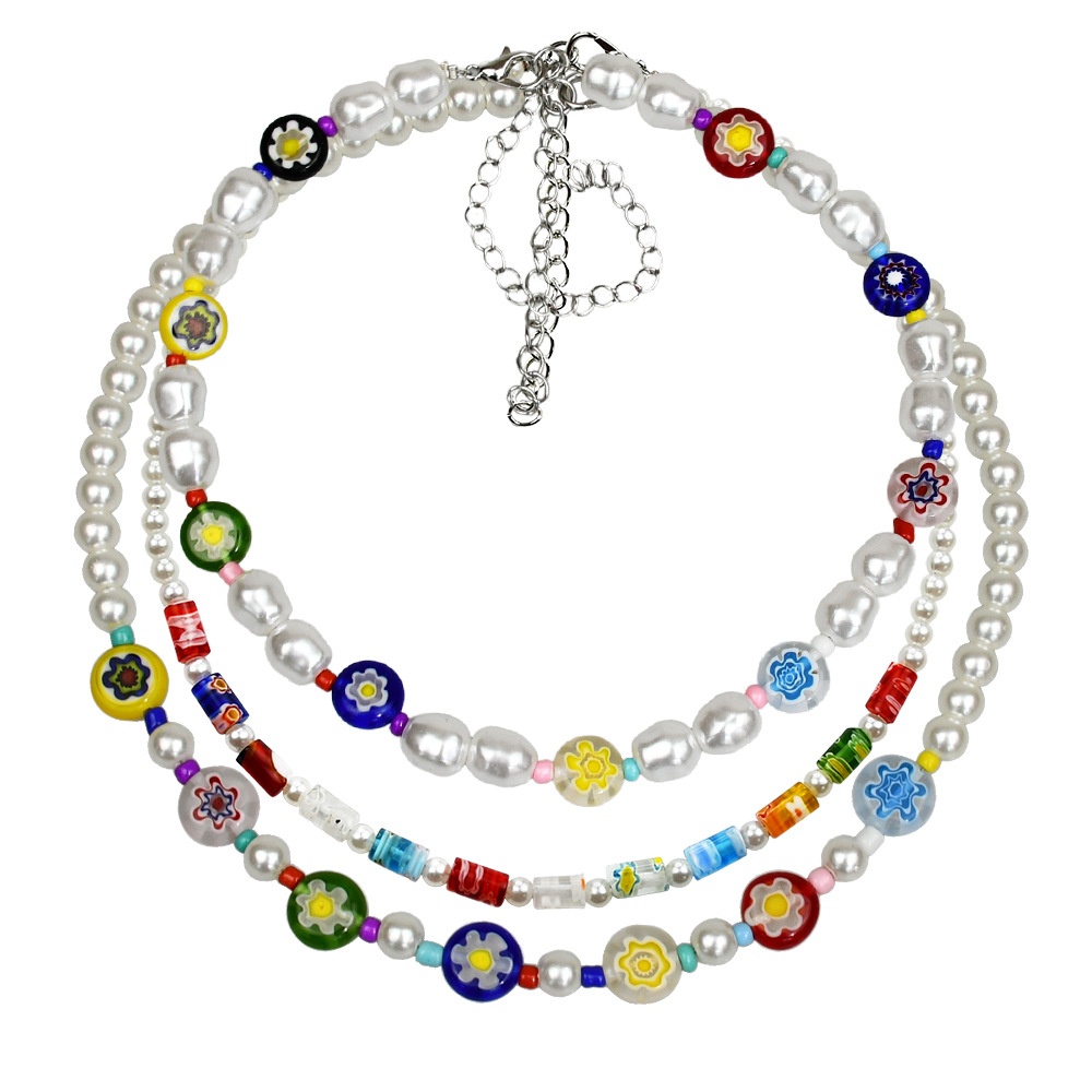 Spring And Summer Fashion Jewelry Small Daisy Glass Beaded Necklace Women's Colored Clavicle Chain Pearl Pendant Necklace