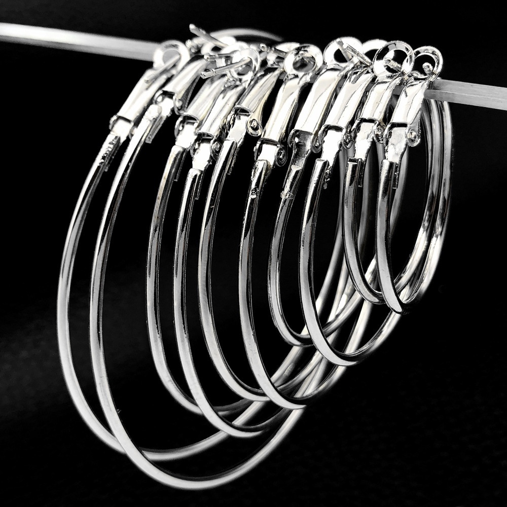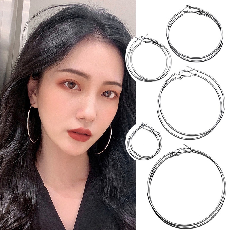 Korean Popular Simple Hoop Big Circle Earrings Silver Needle Female European And American Exaggerated Geometric Ear Jewelry