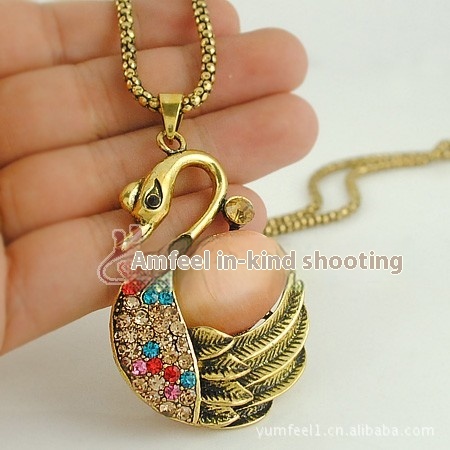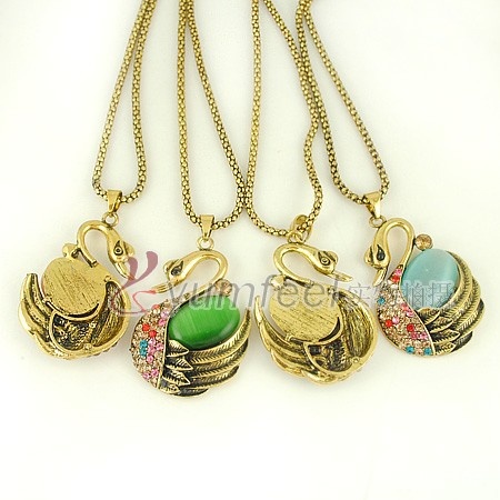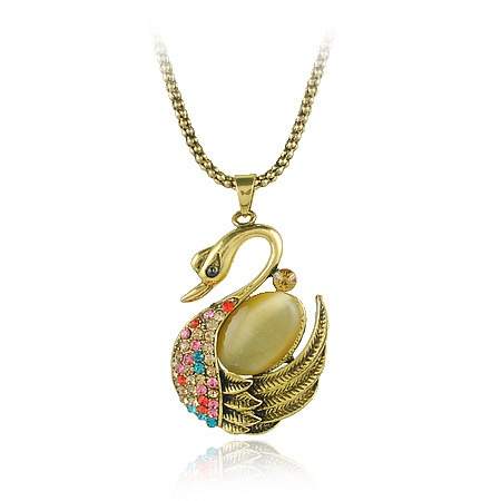 N1244 European And American Alloy Necklace Cat's Eye Stone Ancient Gold Necklace Retro Swan Pendant Sweater Chain