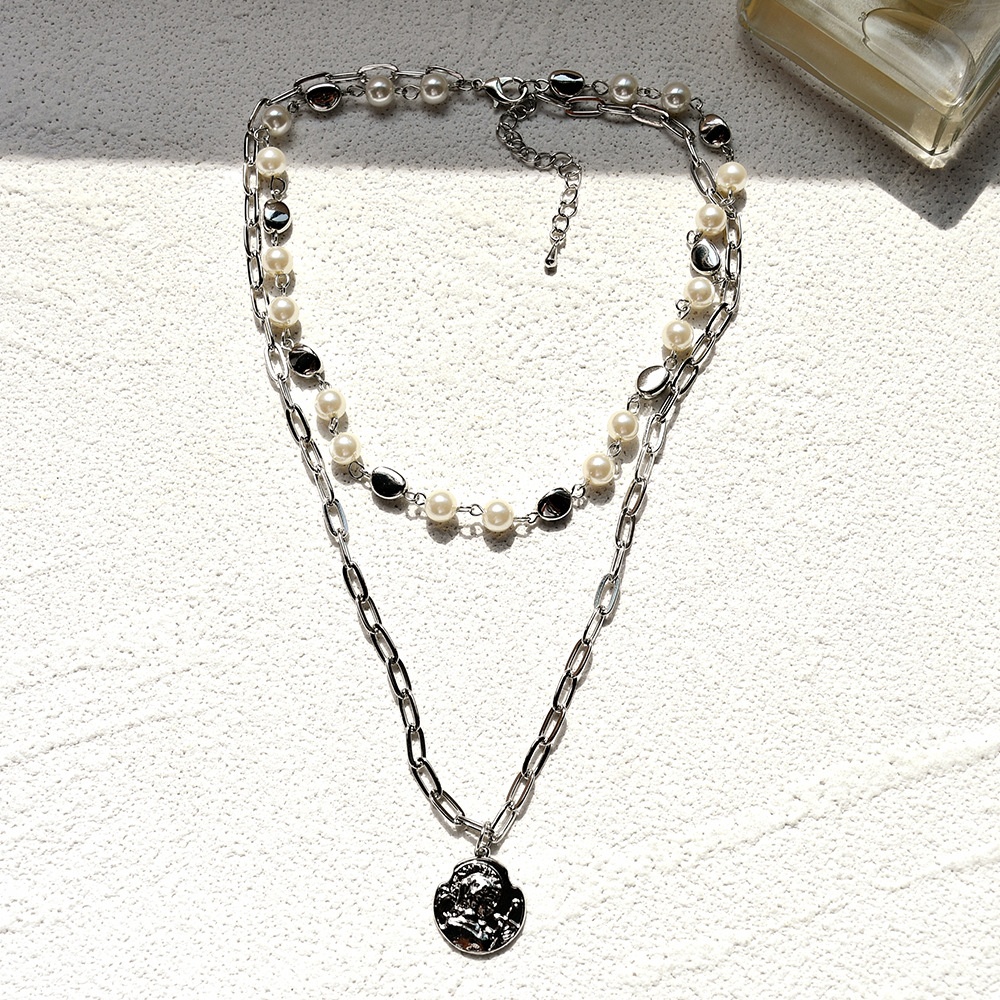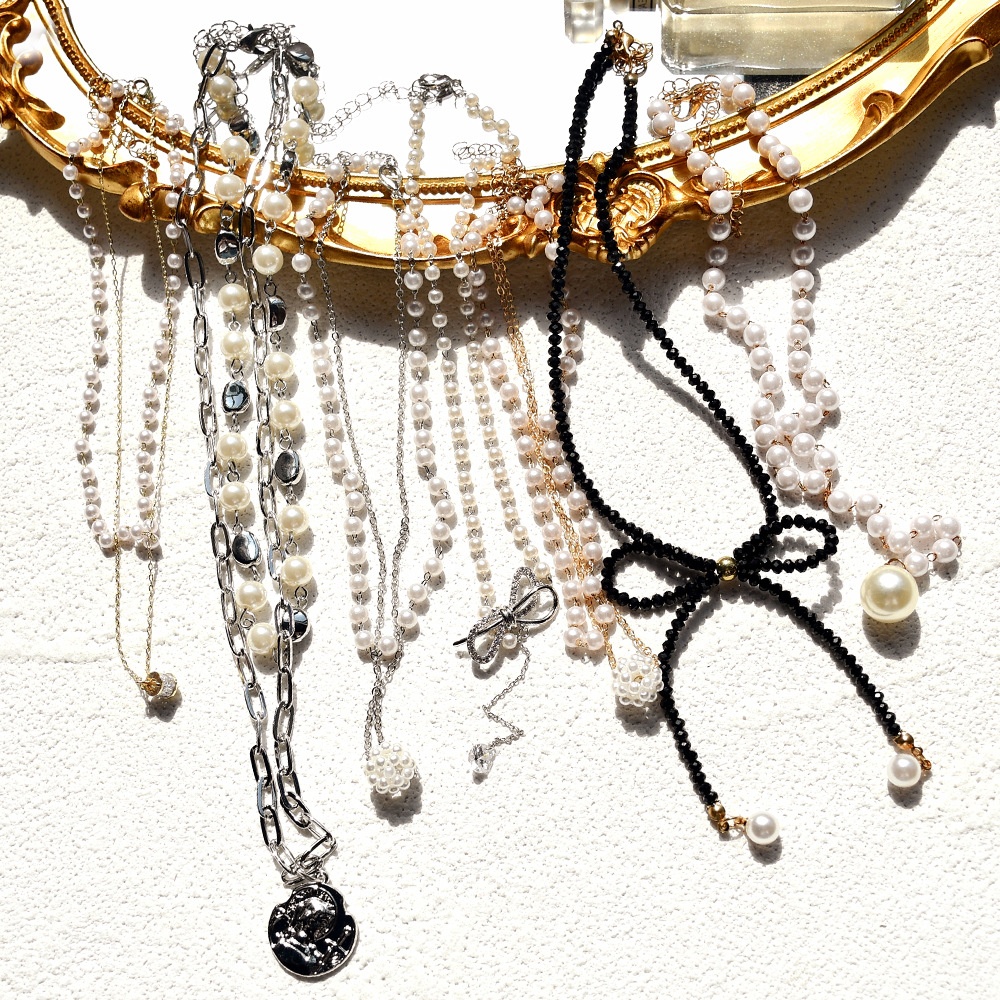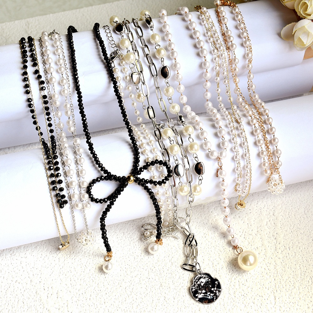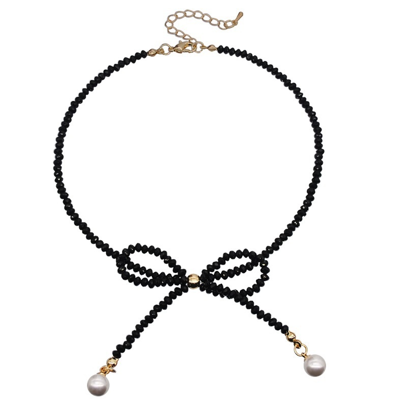 Autumn And Winter Metal Crystal Clavicle Necklace Female Pearl Bow Necklace Hip-hop Style Niche Handmade Neck Chain