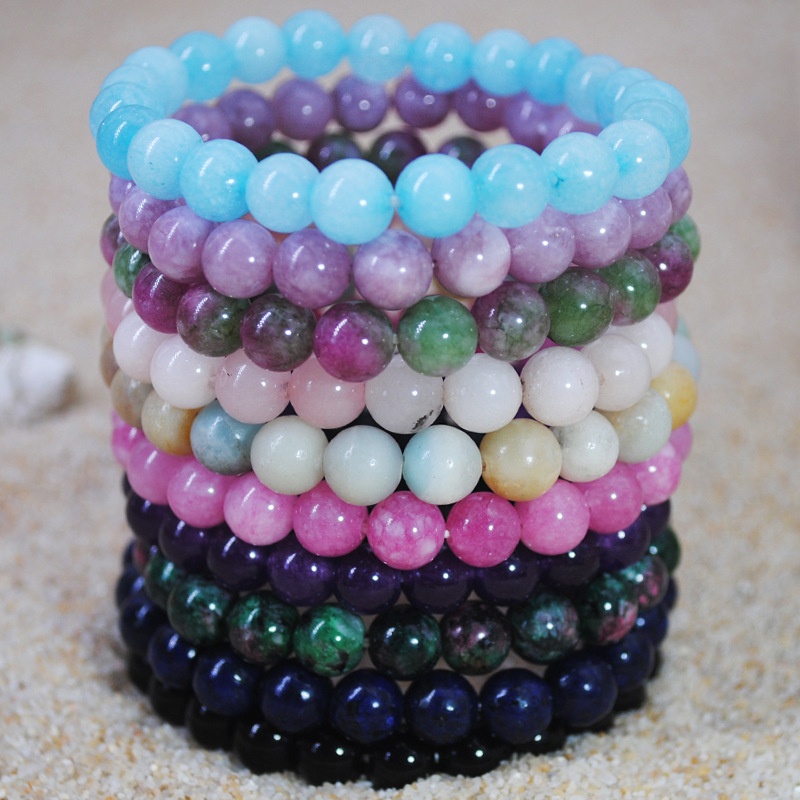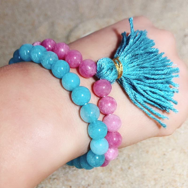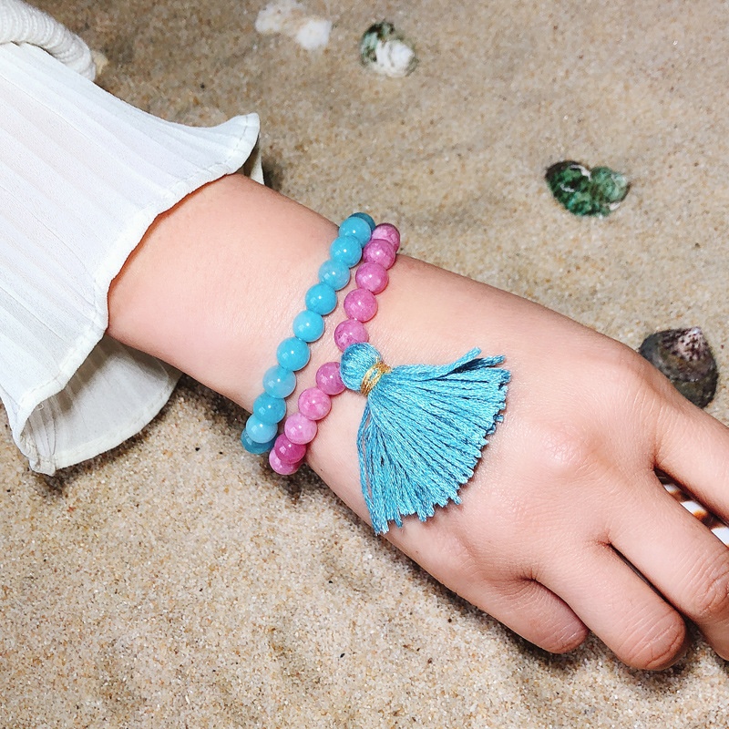 Colorful Crystal Agate Stone Beaded Fashion Bracelet Beach Style Pink Crystal Round Beads Handmade Gifts