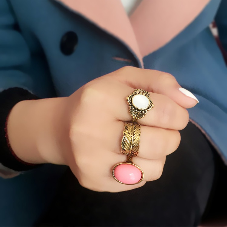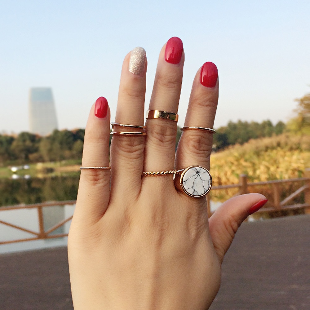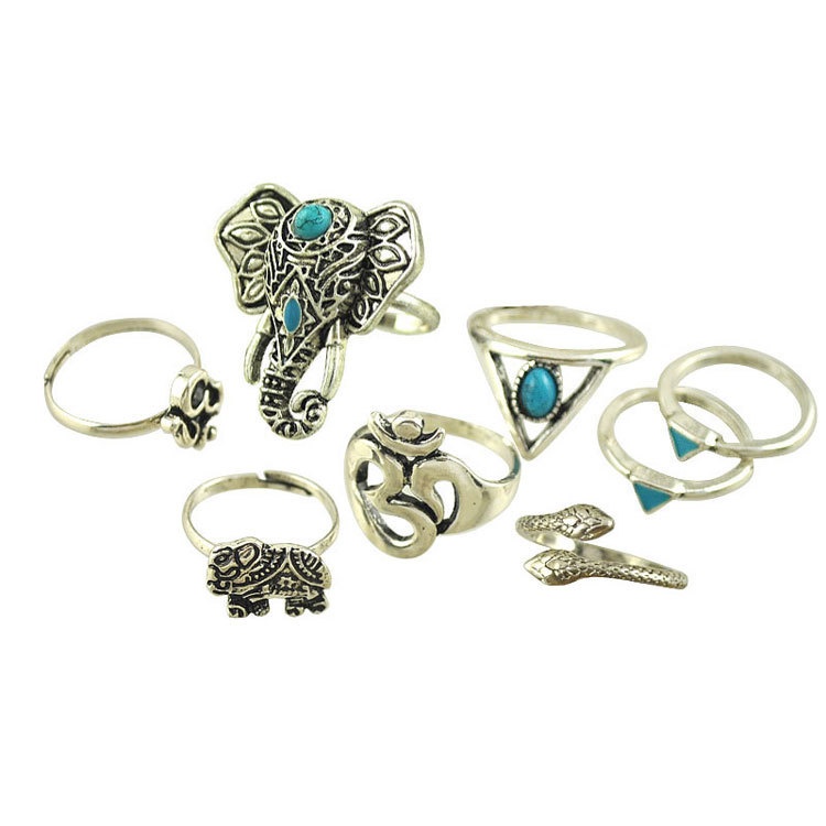 Bohemian Ring Ethnic Style Carved Diamond Retro Gemstone Ring Seven-piece Set