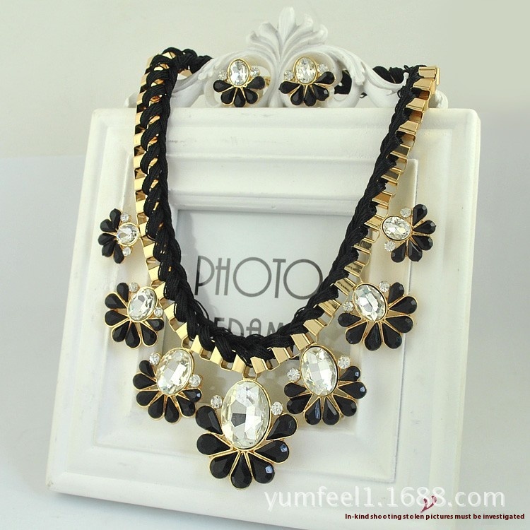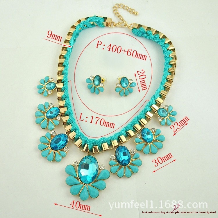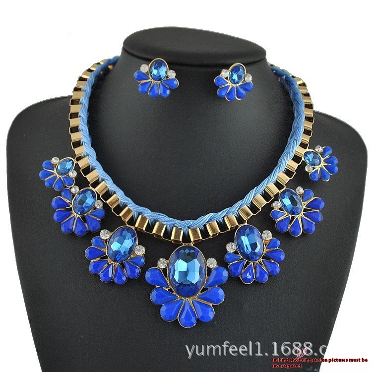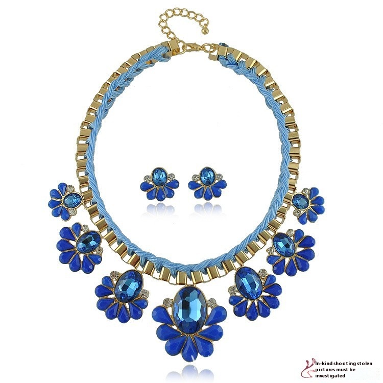 S091 European And American Short Crystal Flower Necklace Set Fashion Necklace Earrings Two-piece Set