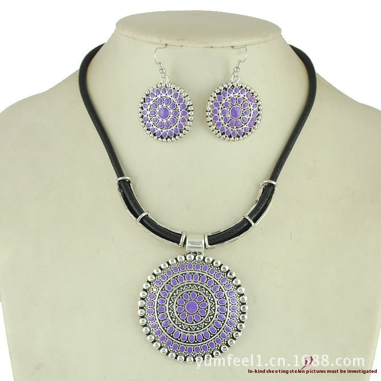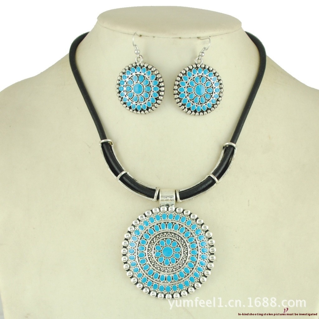 Personalized Charm Leather Rope Necklace Set European And American Bohemian Style Jewelry Set