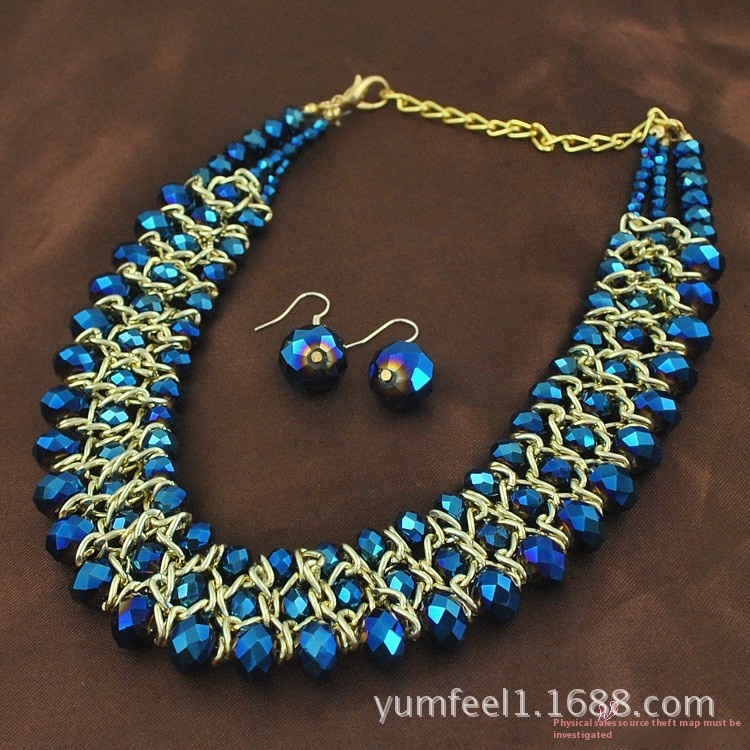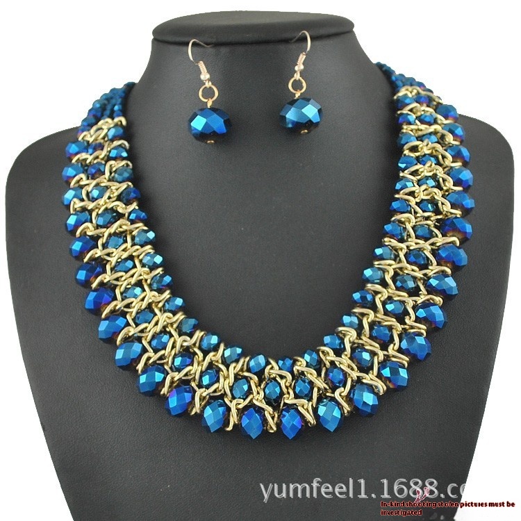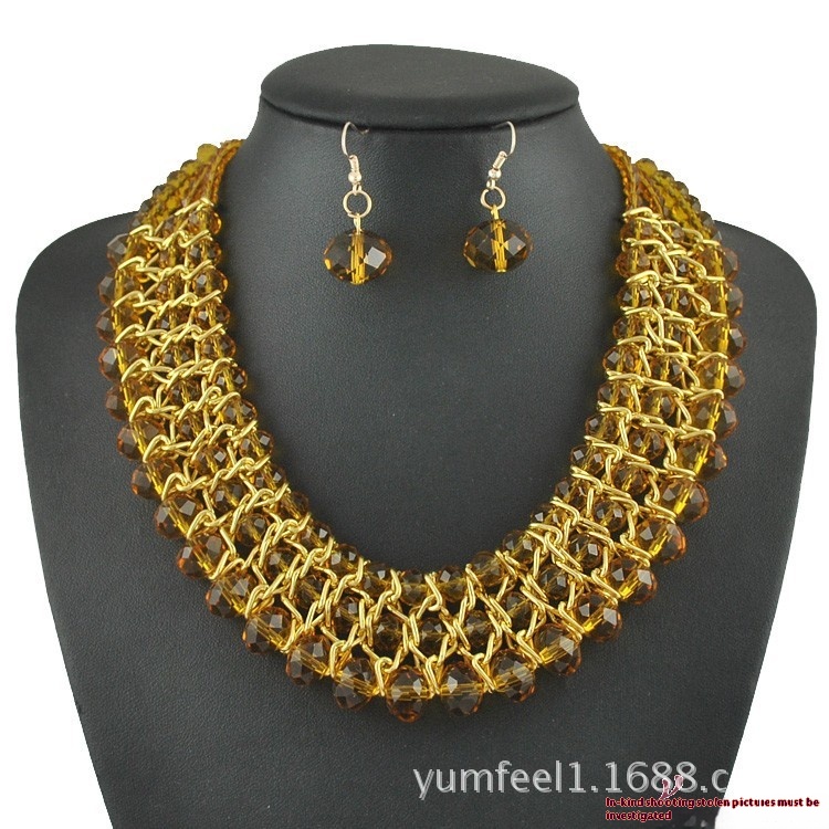 S101 European And American Short Necklace Fashion Multi-layer Crystal Beaded Necklace Earrings Jewelry Set