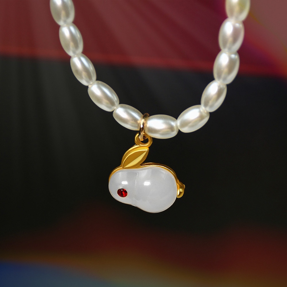 Year Of The Rabbit National Jade Rabbit Pendant Necklace For Girls Fashionable And Versatile Beaded Pearl Necklace Antique Jewelry