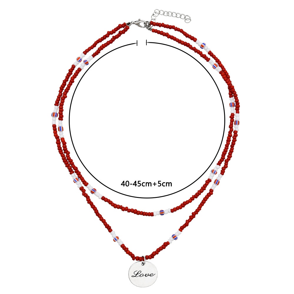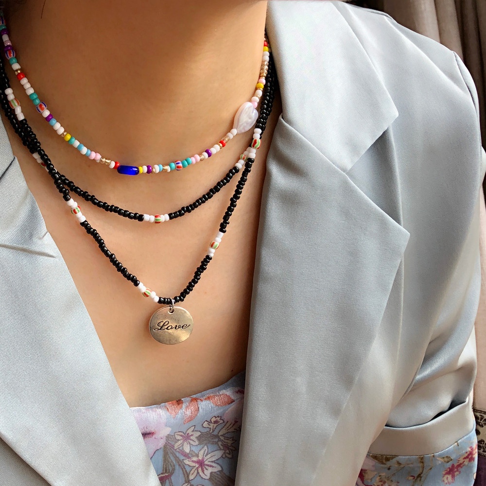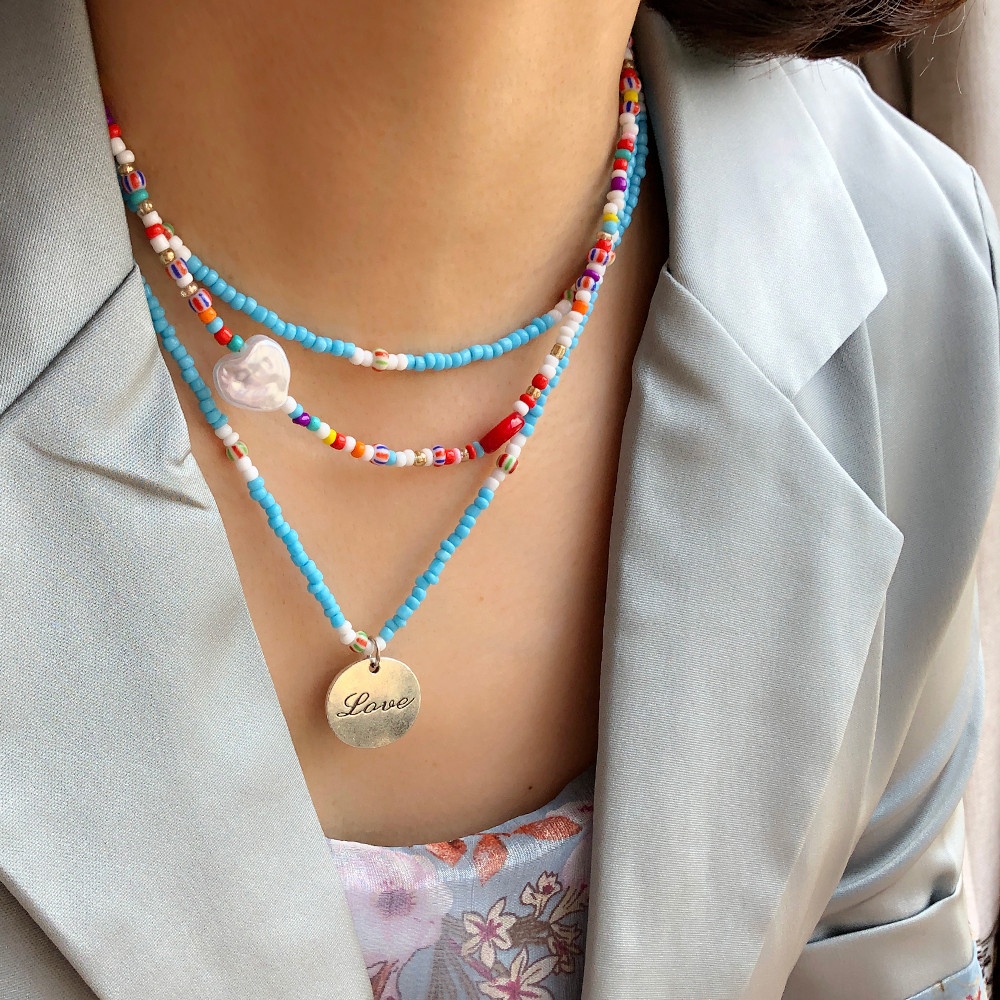 Personalized Autumn Jewelry Commuter Style Rice Beads Double Layer Clavicle Chain Love Letter Pendant Necklace Female