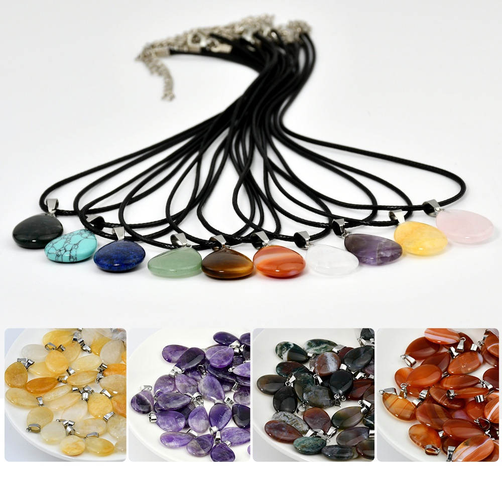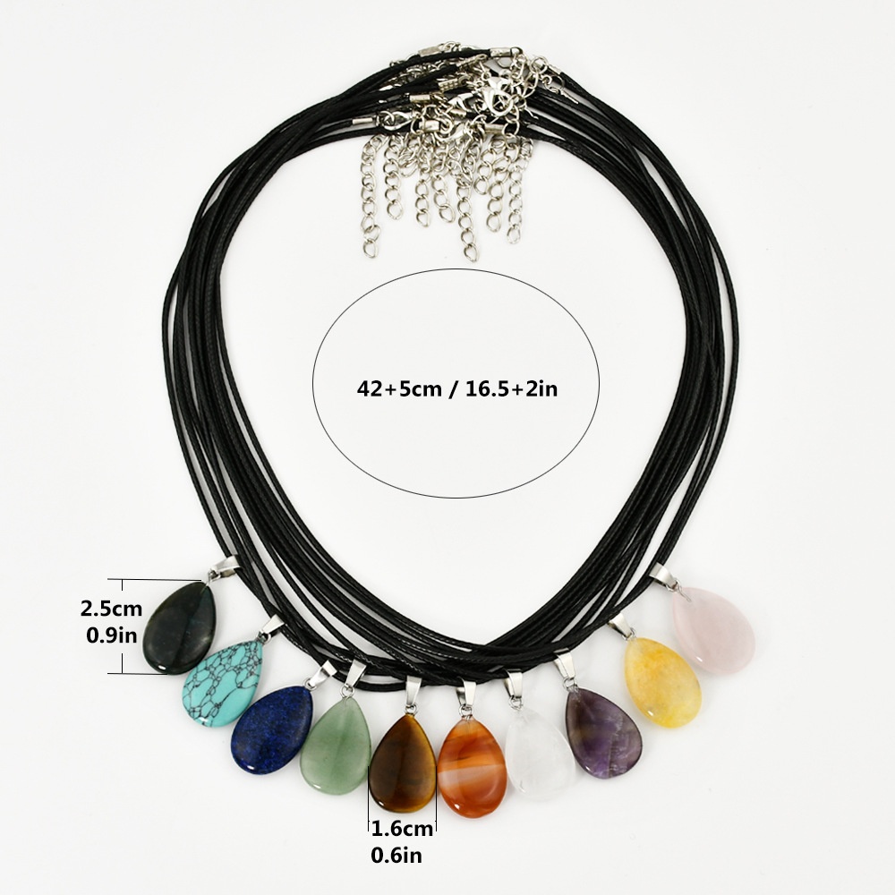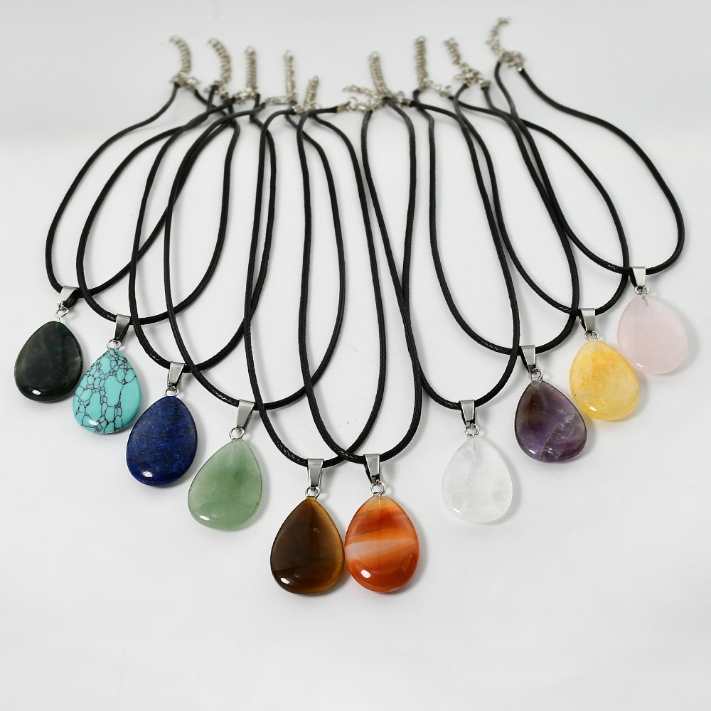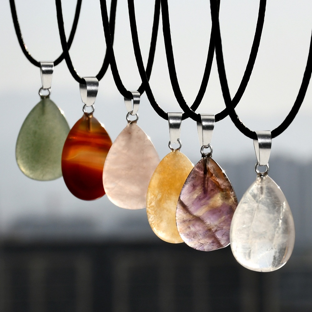 Fashion Minimalist Agate Crystal Black Rope Jewelry Flat Water Drop Pendant Necklace Aventurine Stone Pendant Clavicle Chain