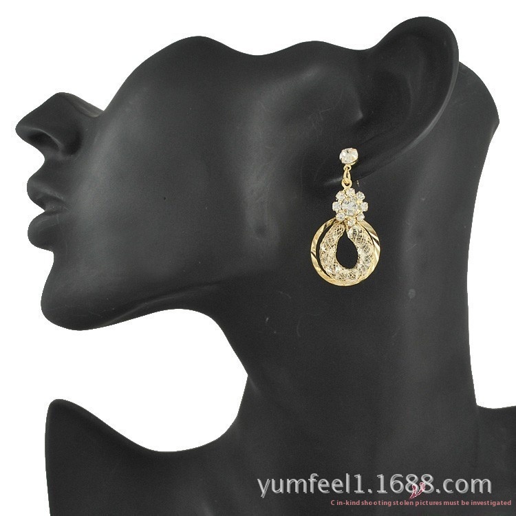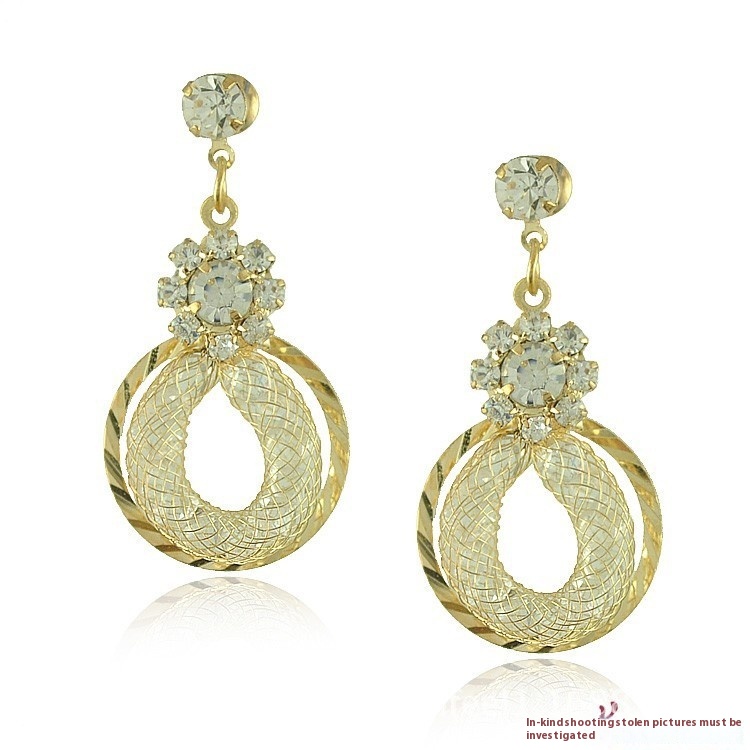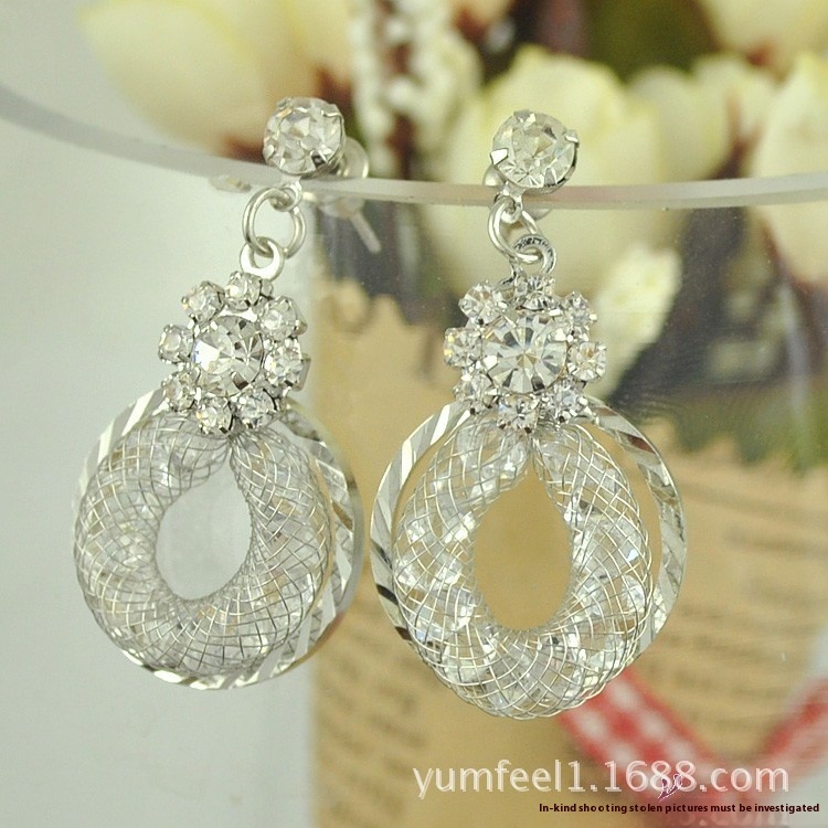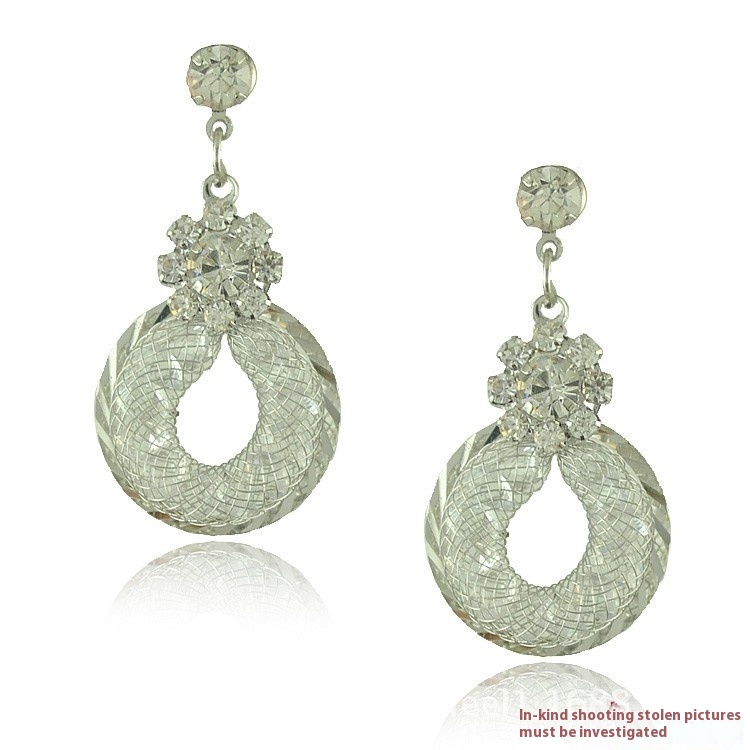 Ladies Luxury Dream Catcher Mesh Rhinestone Earrings Hollow Diamond Inlaid Fashionable All-match Hoop Korean Earrings