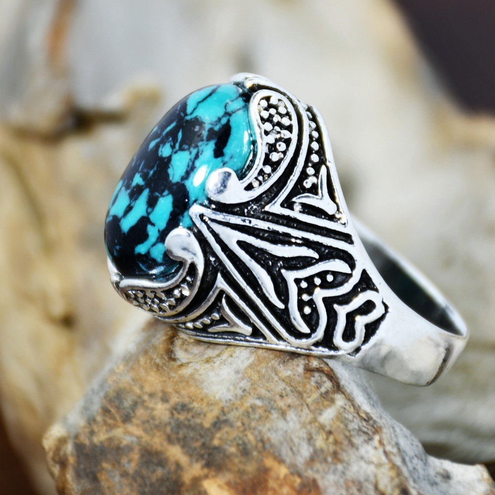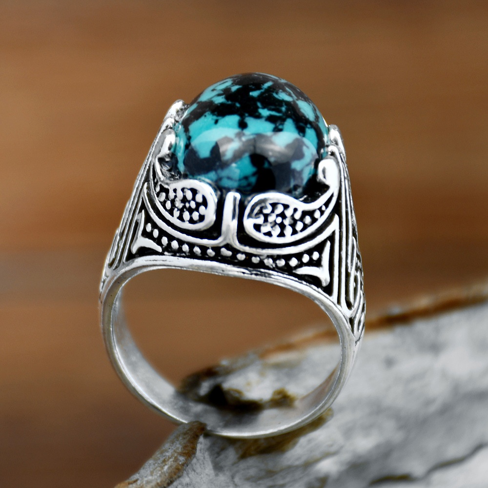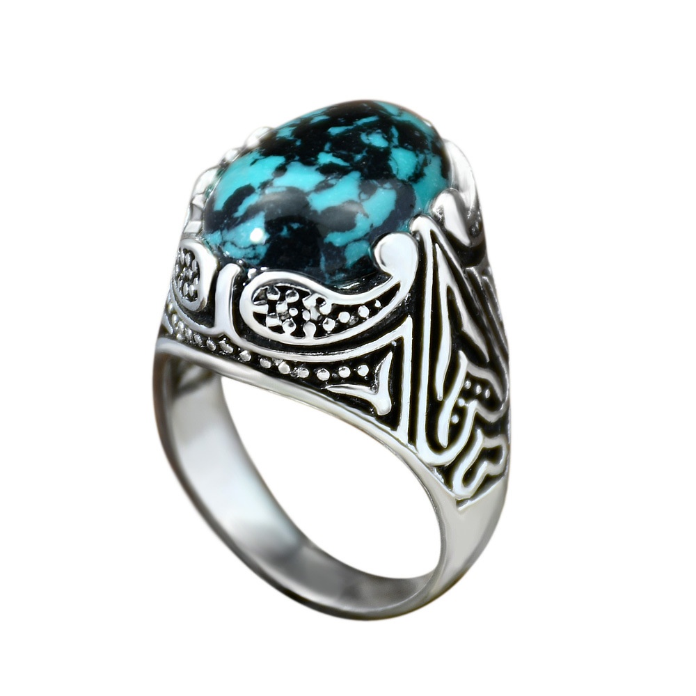 Eaby European And American Inlaid Turquoise Retro Ring Jewelry E-commerce Antique Silver Ring Men's Foreign Trade