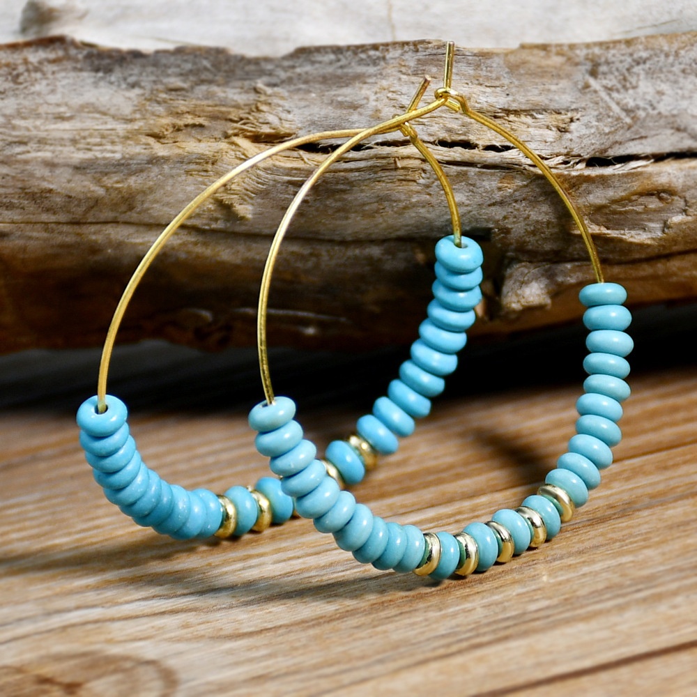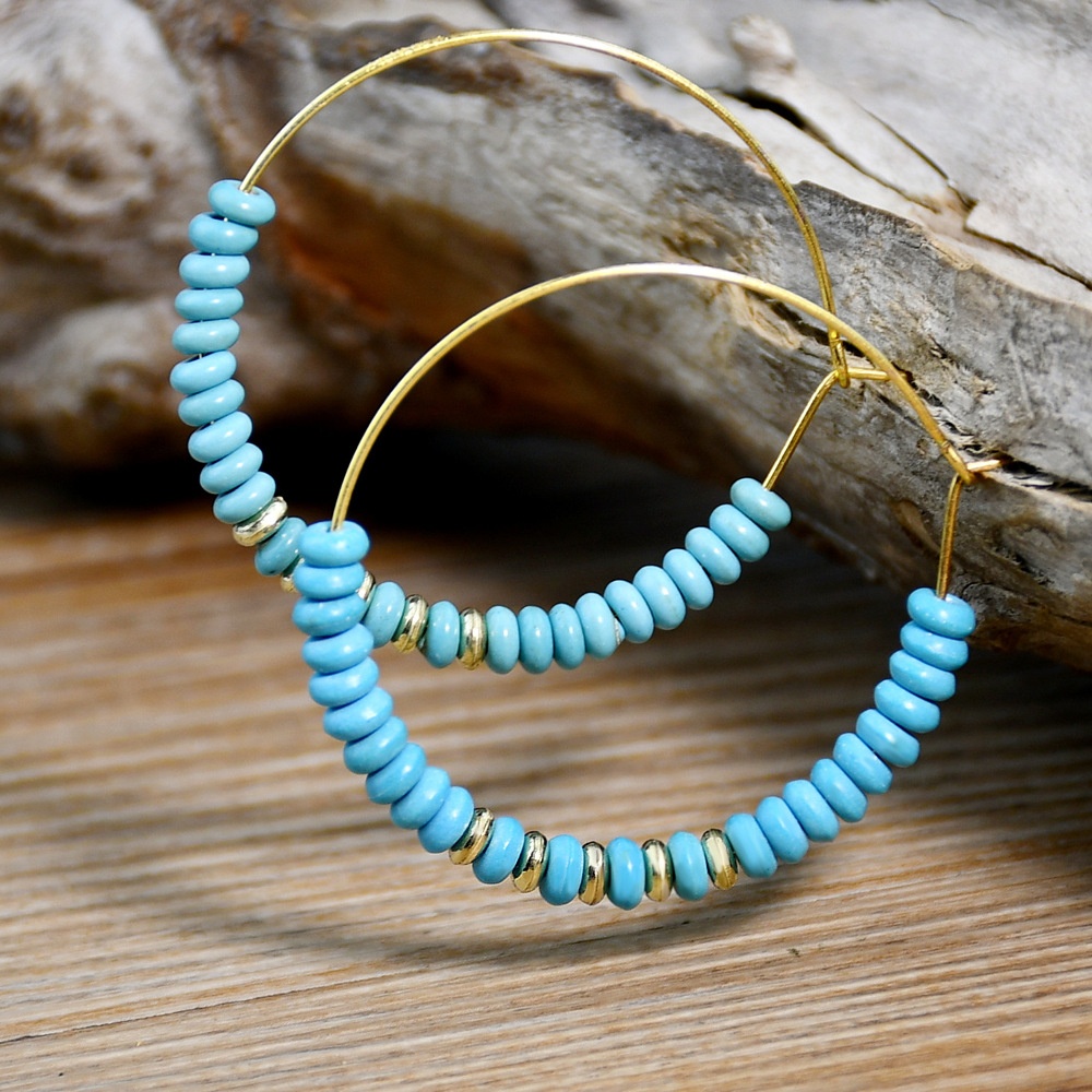 Ethnic Style Ear Jewelry High-end Niche Turquoise Earrings Female Geometric Large Earrings European And American Retro Earrings