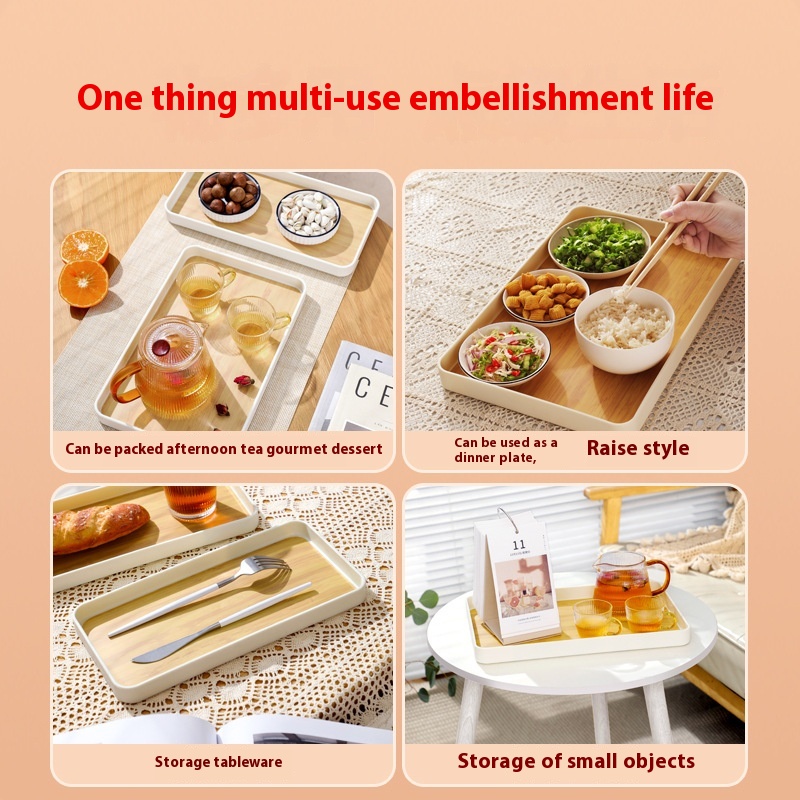 Creative Rectangular Tray Creative Imitation Bamboo Pattern Tea Set Placement Tea Tray Japanese Style Household Plastic Fruit Tray