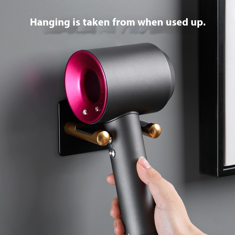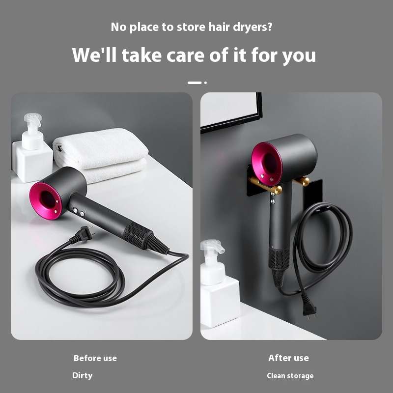 Punch-free Bathroom Hair Dryer Bracket Toilet Wall-mounted Hair Dryer Hanger Iron Plug Storage Rack
