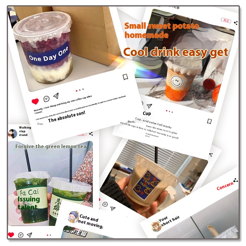 Disposable Coffee Cups Homemade Beverages Hot And Cold Drinks Pet Plastic Cups Packaged Takeaway With Lid DIYMilk Tea Cups