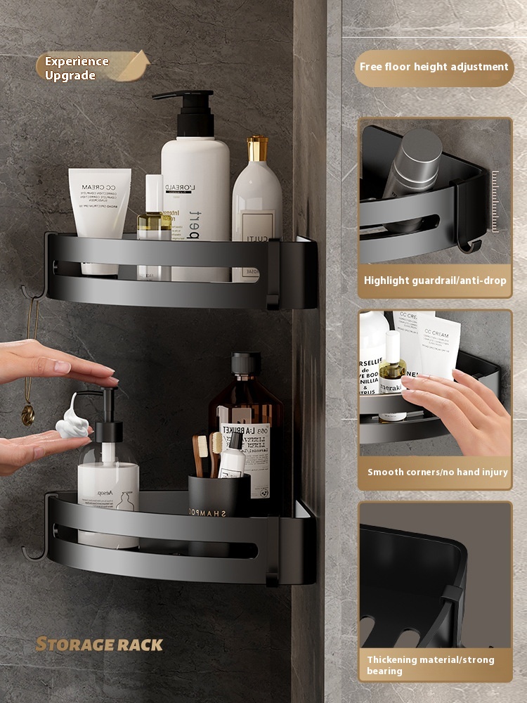 Punch-free Bathroom Triangle Rack Wall-mounted Bathroom Toilet Wash Basin Shower Corner Storage Rack