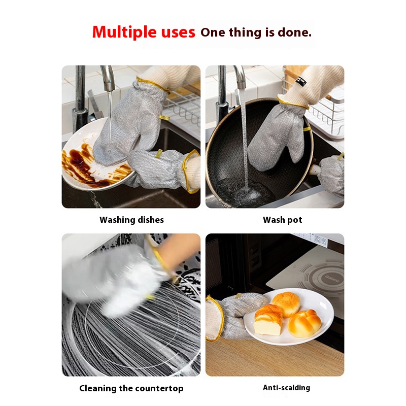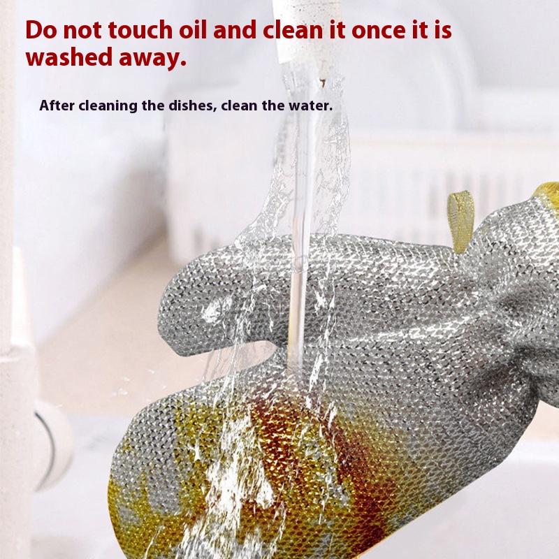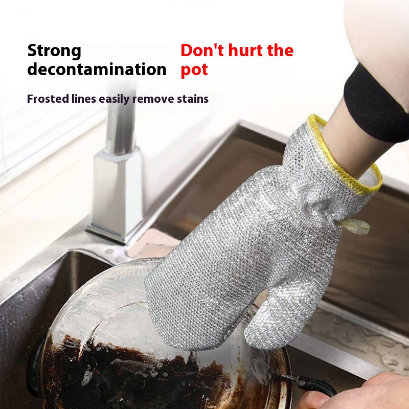Silver Wire Dishwashing Gloves Household Kitchen Housework Dishes Cleaning Potulation Waterproof Thick Double-sided Gloves