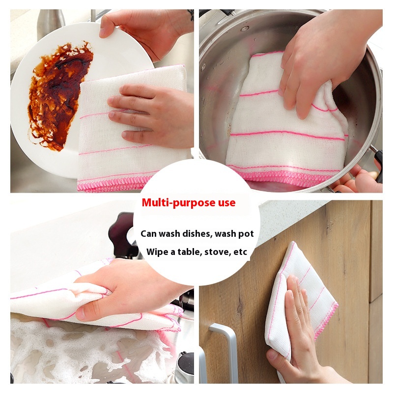 5-layer Cotton Yarn Absorbent Dishwashing Towel Household Kitchen Cleaning Cloth Non-stick Oil Scouring Pad Degreasing Dish Wiping Cloth