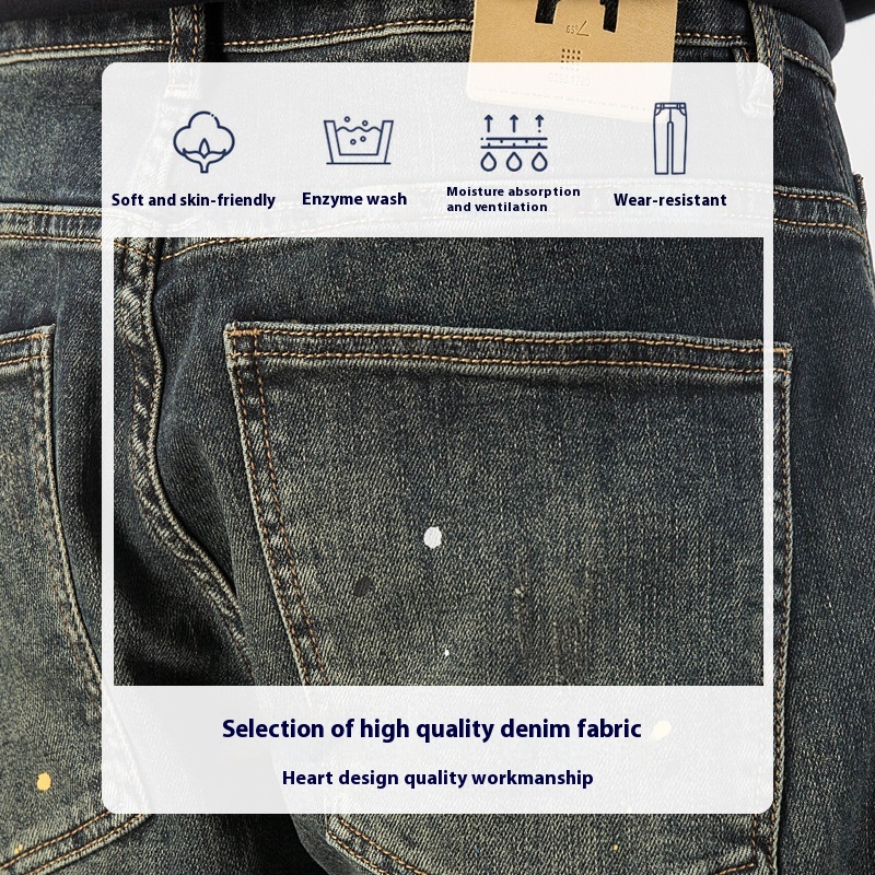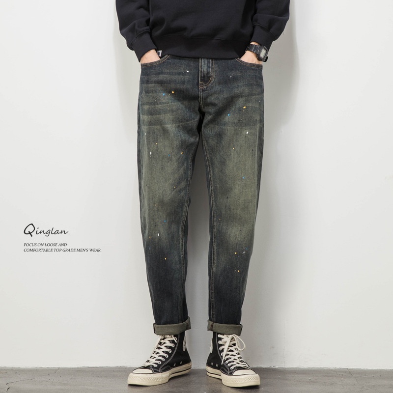 Paint-splashed Jeans For Men,Straight,Loose,Large-size,Tapered,y Brand Pants,American Retro,Cool,Spring Styles