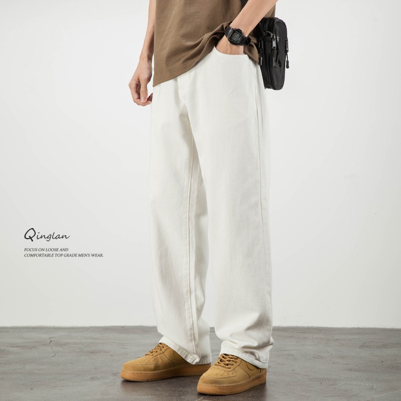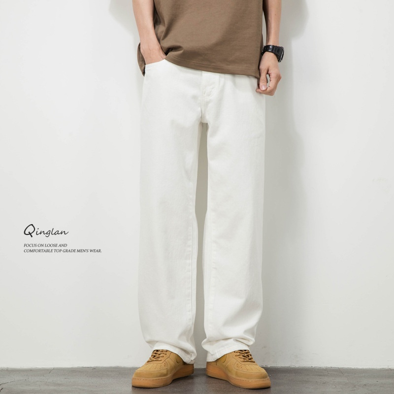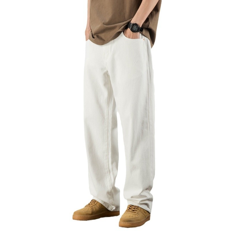 White Jeans Men's Loose Straight Wide-leg Large Size Drape Simple High-end Pants Spring
