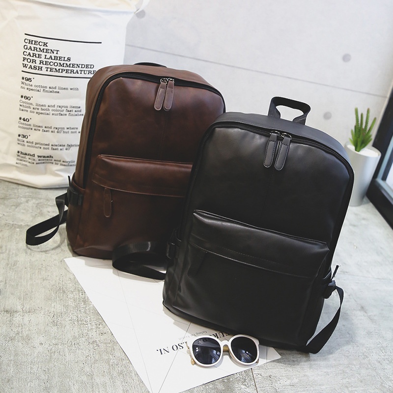 PULeather Men's Backpack Backpack Travel Bag Simple Student Schoolbag Computer Men's Bag