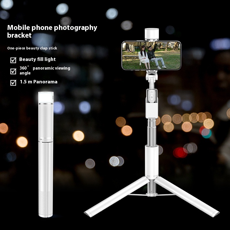 蓝牙自拍杆 R G B补光灯桌面落地三脚架手机拍摄支架