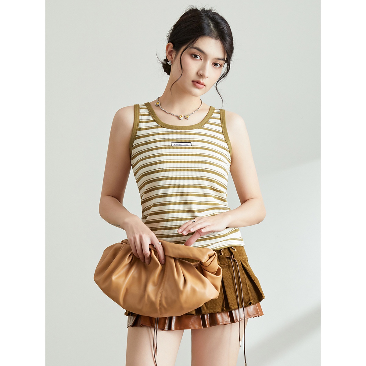 Contrast Color U-neck Striped Vest Spring And Summer All-match Casual Student Sleeveless T-shirt Top Bottoming Shirt