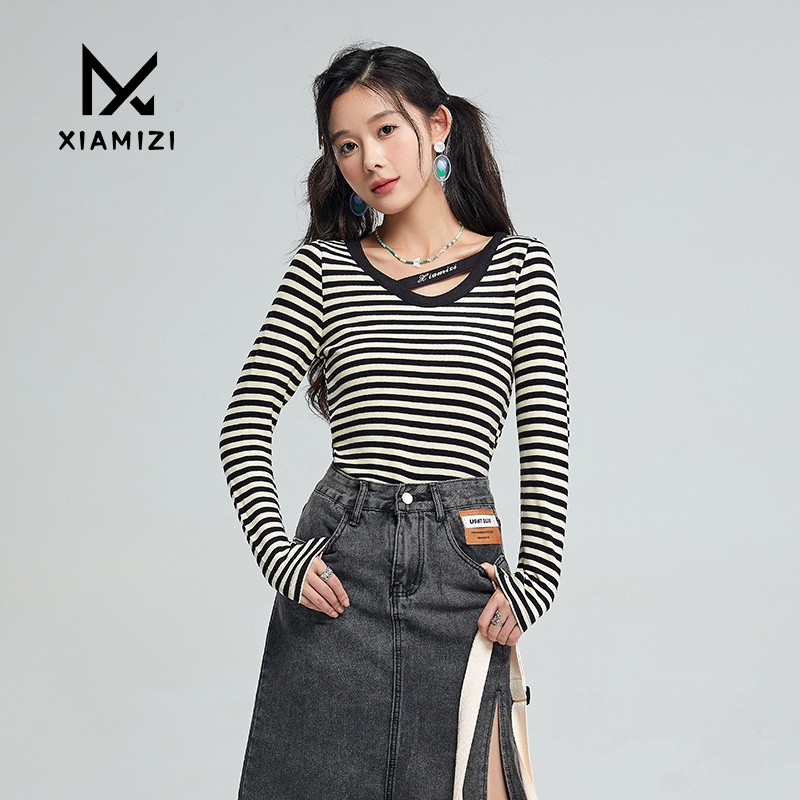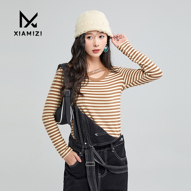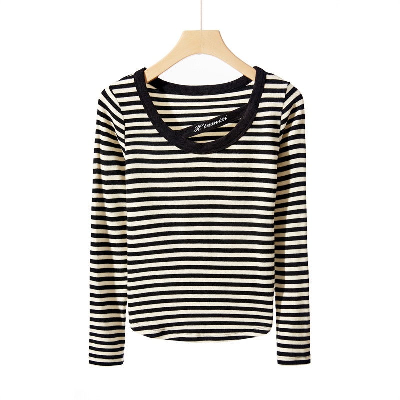 Sexy Striped Hollow Long-sleeved Knitted Bottoming Shirt For Women Early Autumn Design Niche Tops For Women