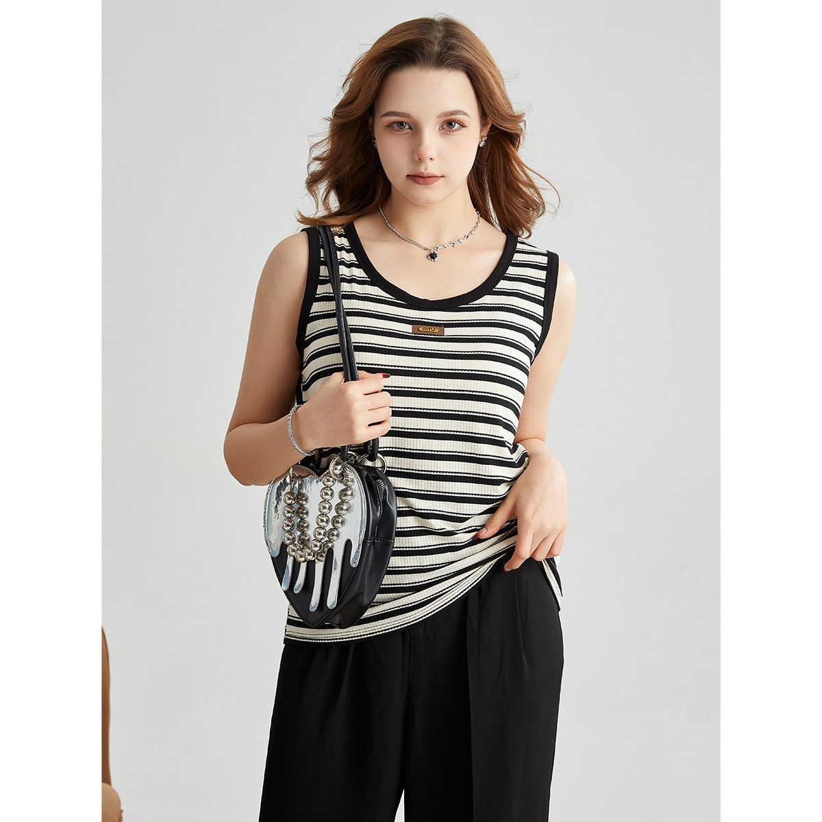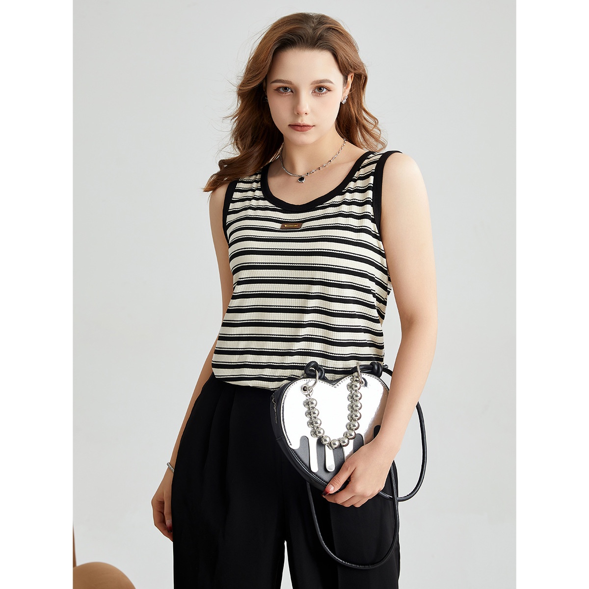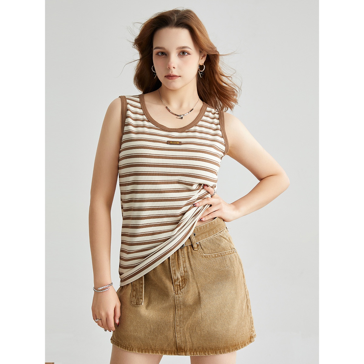 U-neck Contrast Vest Spring And Summer With Chest Pad Seamless Breathable Casual All-match Sleeveless Top Loose