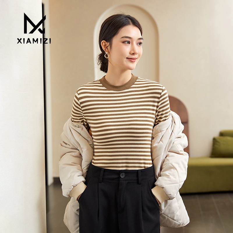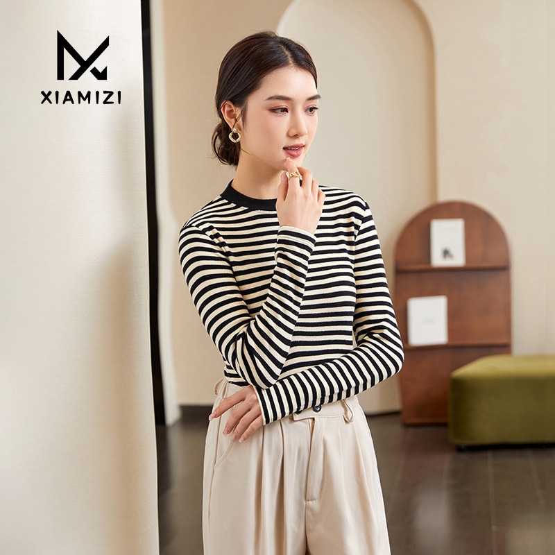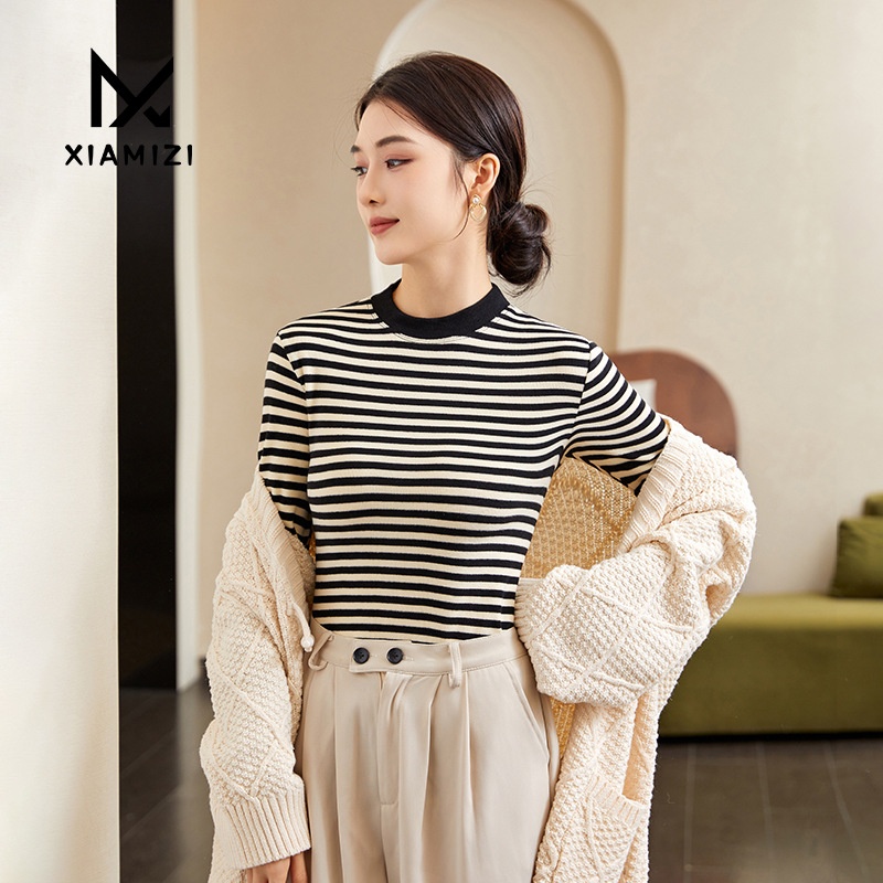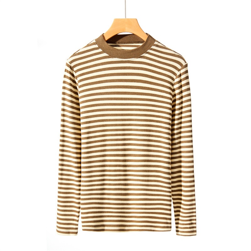 Autumn And Winter Striped Base Shirt Knitted Sweater Women's Long Sleeve Inner Top Slim Fit Outer Wear Pullover Sweater Women