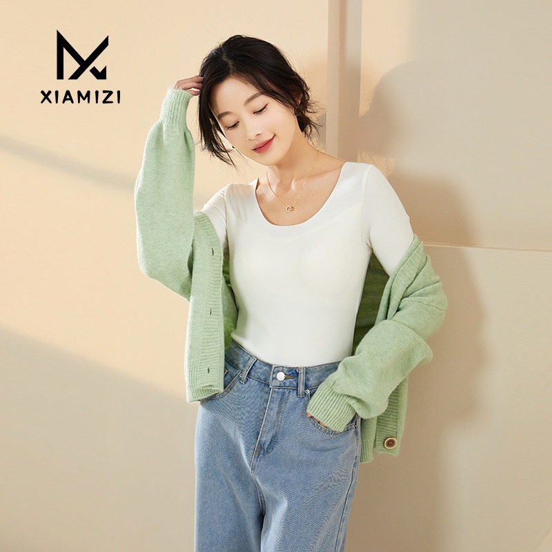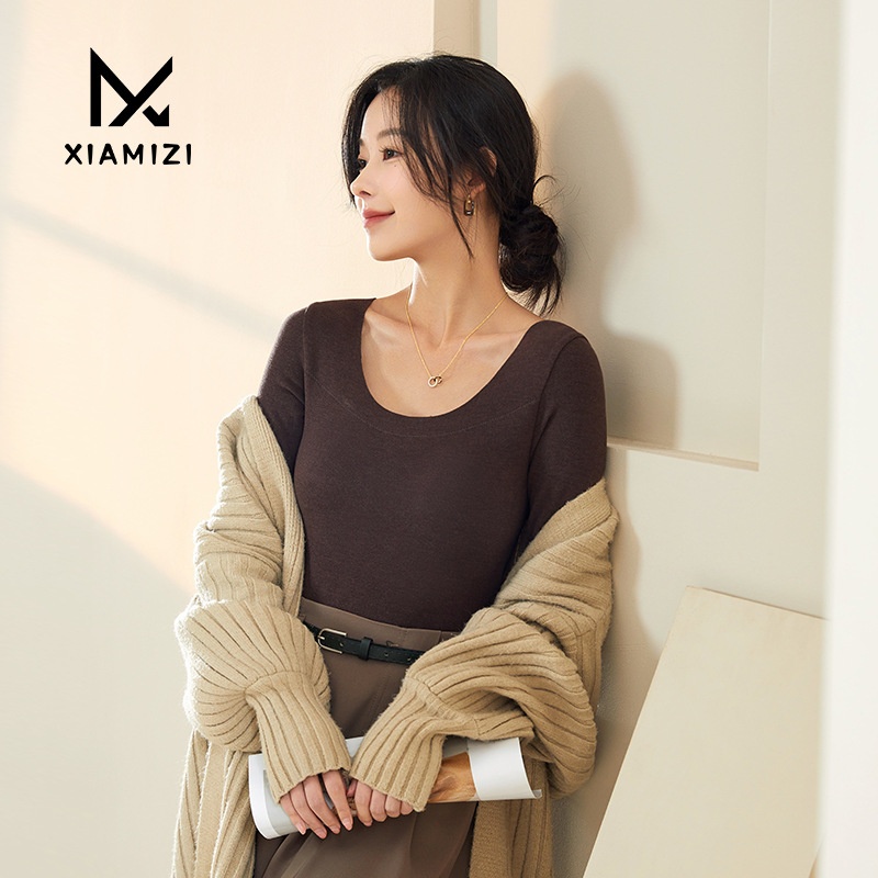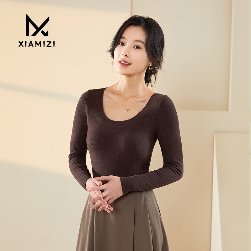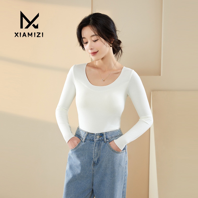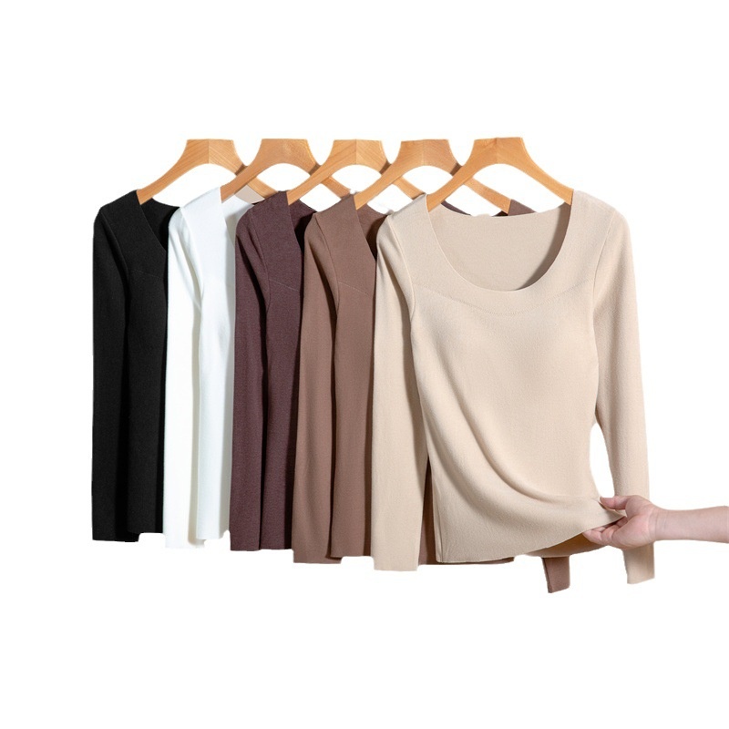 T-shirt With Chest Pad U-neck Bottoming Shirt For Women Autumn And Winter Long-sleeved Inner Wear Outer Wear Slim Knitted Versatile Top