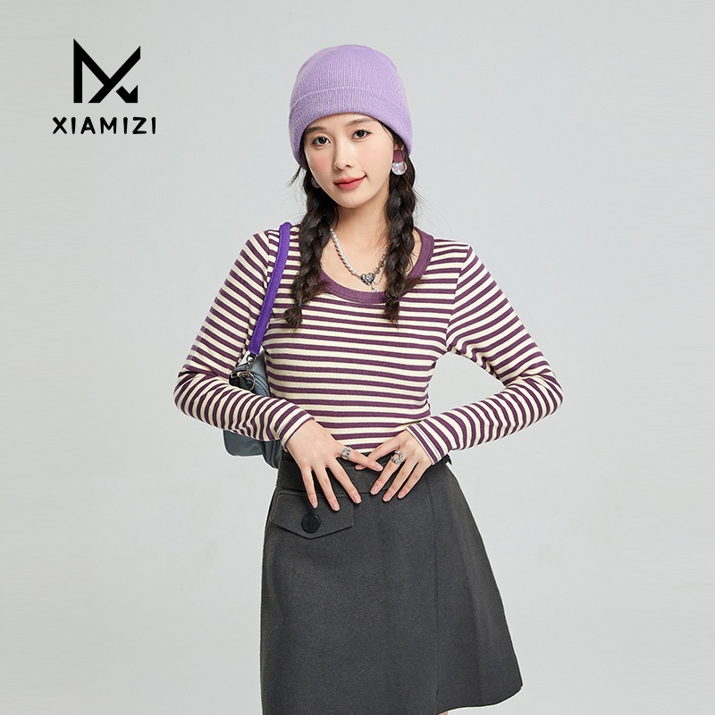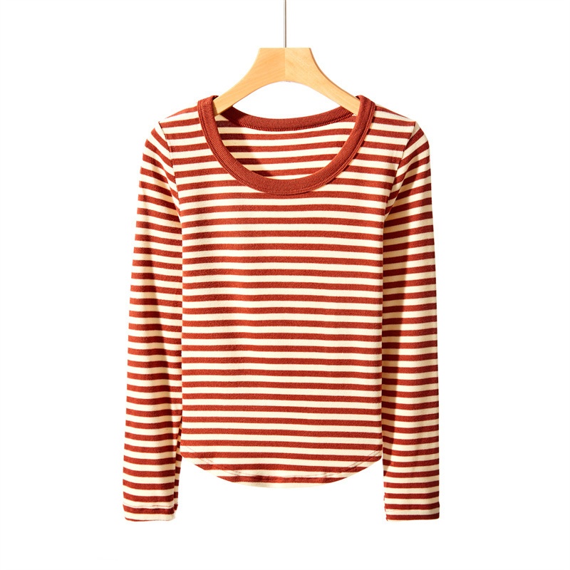 Autumn And Winter Long-sleeved Bottoming Shirt For Women,Round-neck Striped Knitted Sweater,Stylish Inner Wear,Slimming Sweater,Hot Girl Top