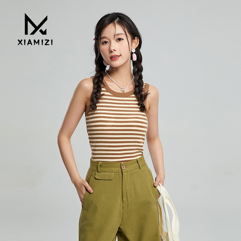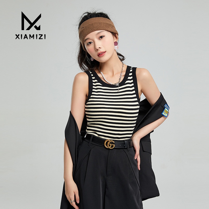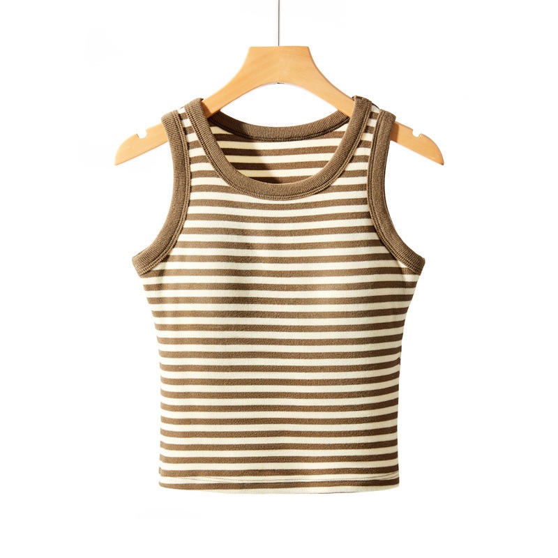German Velvet Warm Vest For Women With Heat In Autumn And Winter,Slim Fit,Round Neck,Inner Chest Pad,Outer Wear,Contrast Color Striped Suspender Bottoming Shirt