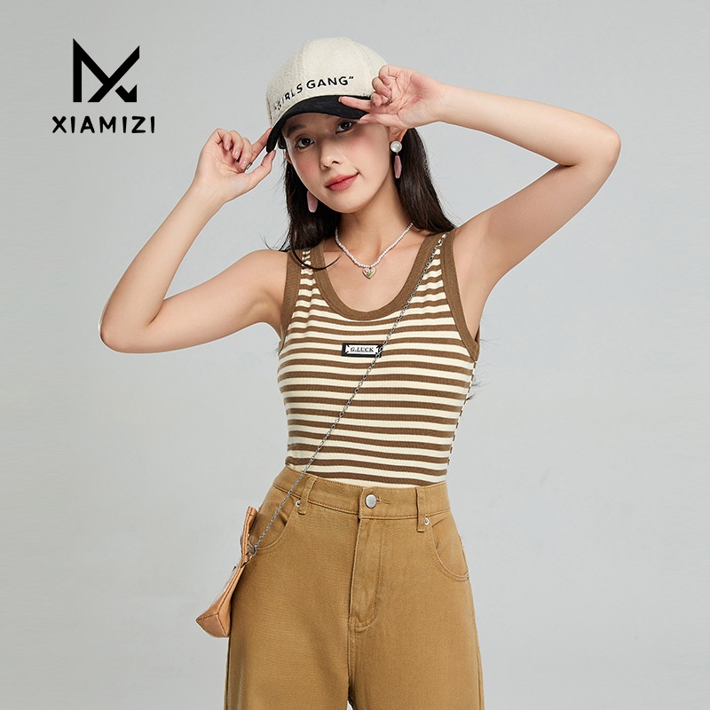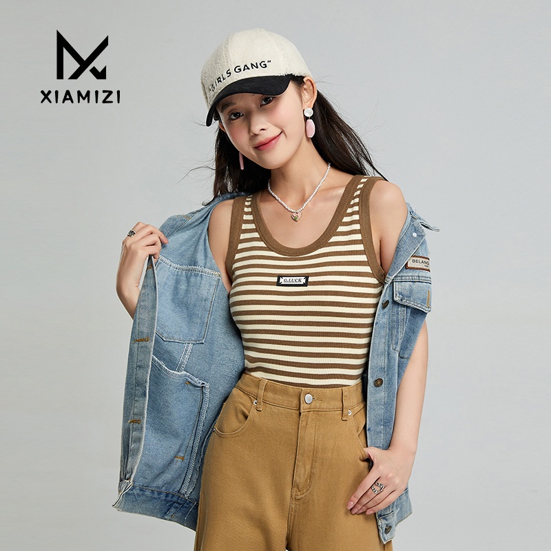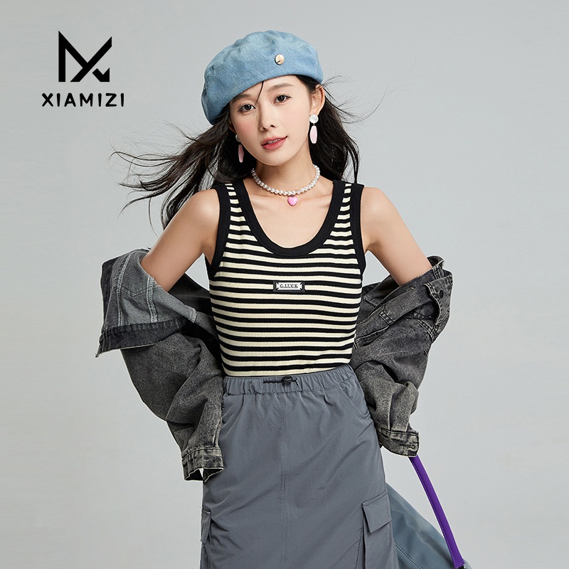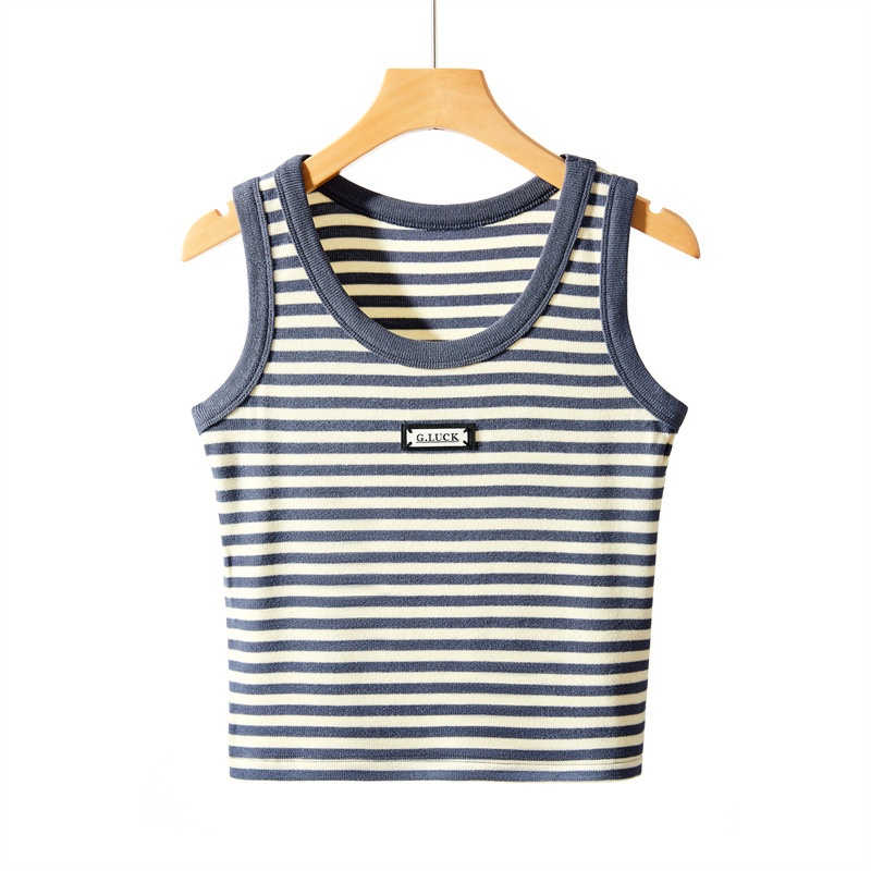 German Velvet Knitted Camisole Vest For Women In Autumn And Winter,Thickened Thermal Underwear,Slimming Bottoming Striped Top For Women