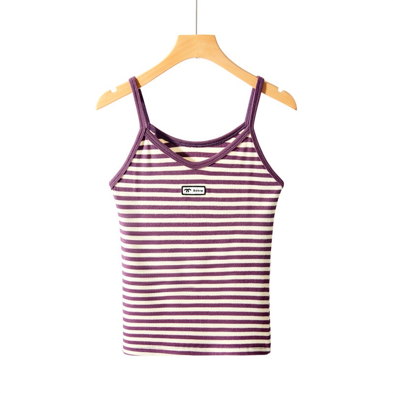 Autumn And Winter Sexy Small Camisole For Women,V-neck Tube Top For Inner Wear,Beautiful Back Bottom,Striped Warm Heating Top