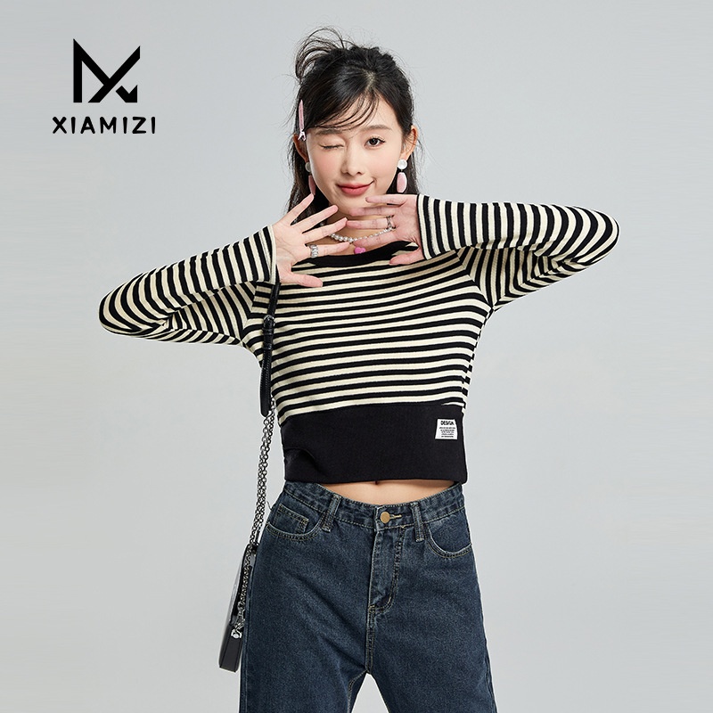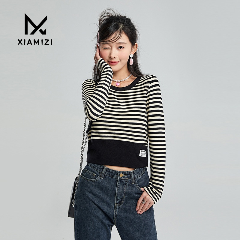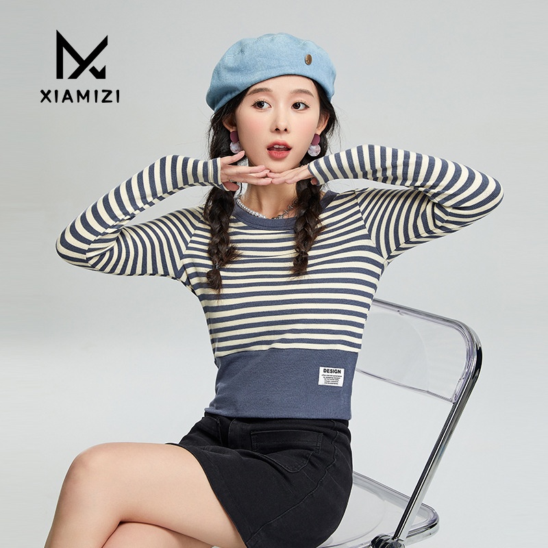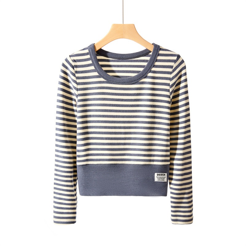 Autumn And Winter Design Niche Striped V-neck Long-sleeved Knitted T-shirt Women's Tops Thin Slim Fit Chic Bottoming Shirt
