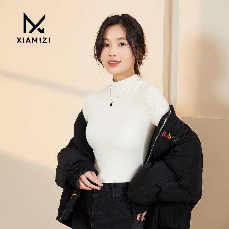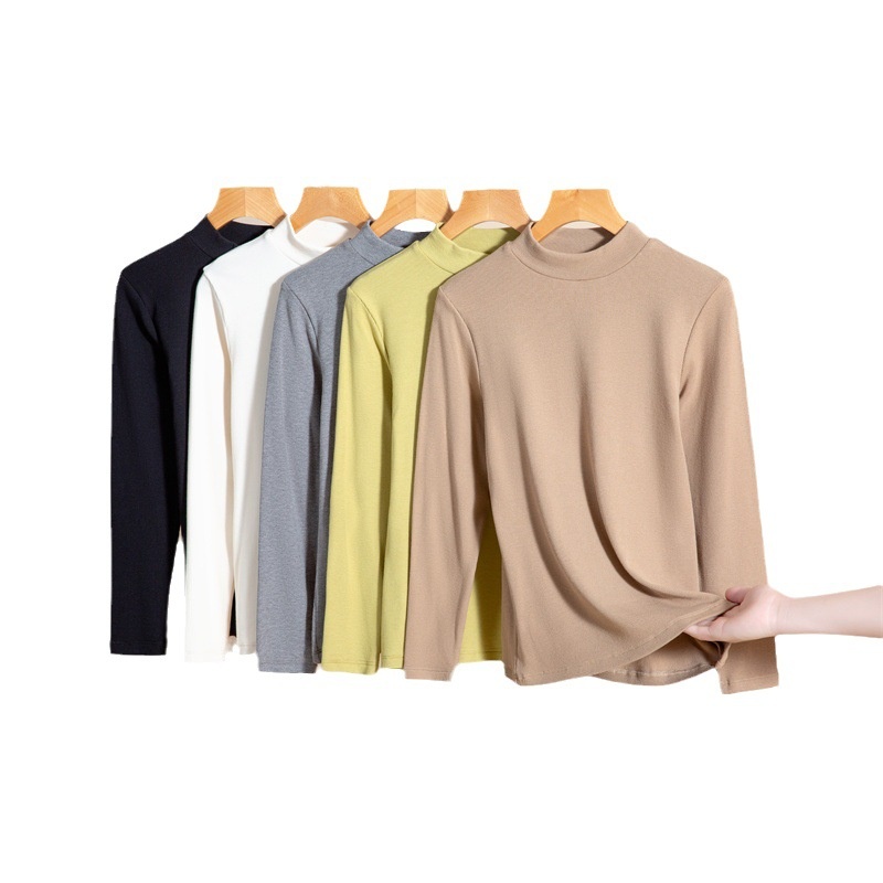 Autumn And Winter Half-high Collar Warm Bottoming Shirt For Women To Wearide And Outside,Slim Fit Long-sleeved Sweater For Women