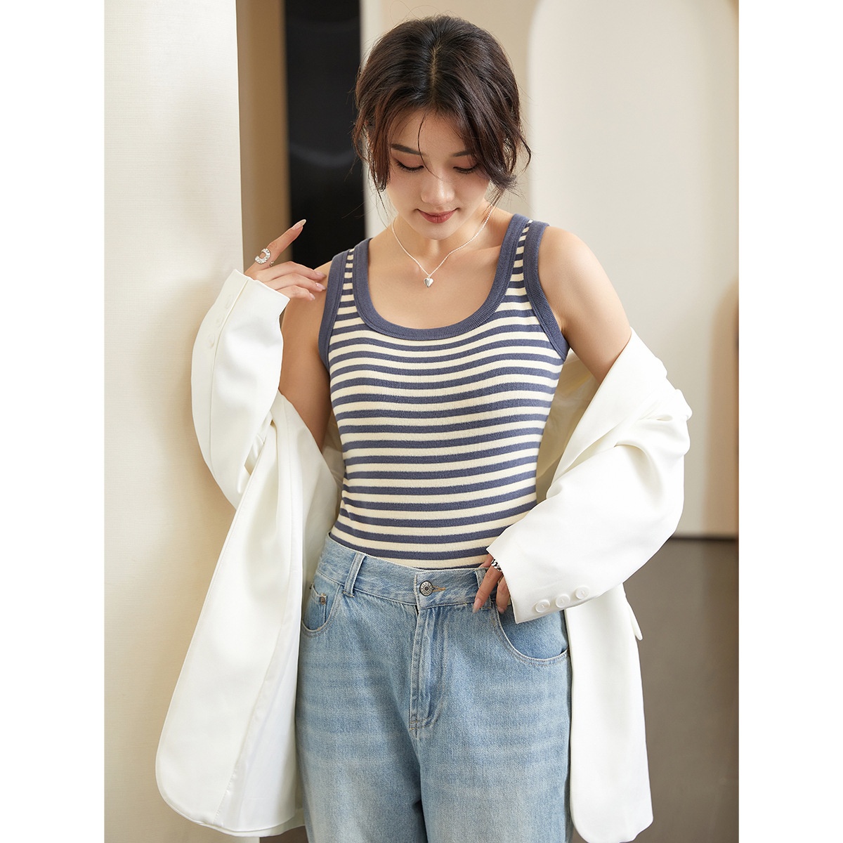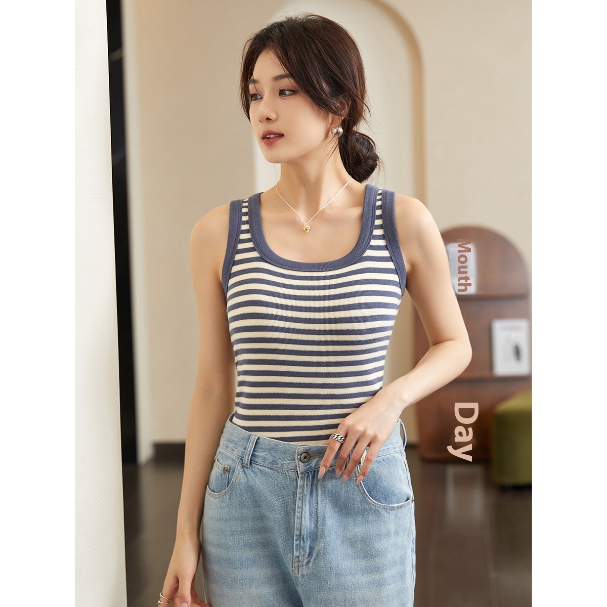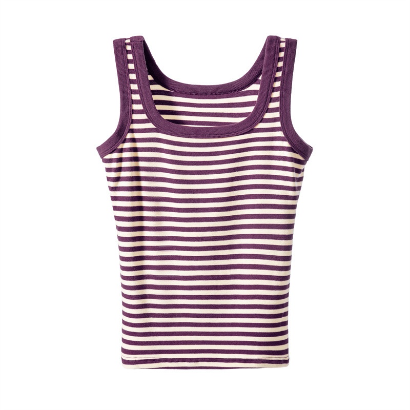 Autumn And Winter U-shaped Underwear Women's Camisole Vest Bottom Striped Inner Sleeveless T-shirt Outer Wear Slim Hot Girl Top