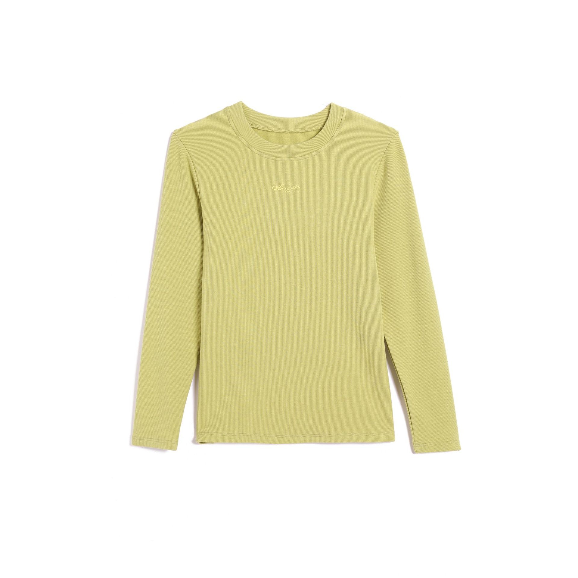 Contrast Color Round Neck Bottoming Shirt For Women Spring Arc Design Waist Top With Slim Long Sleeve T-shirt