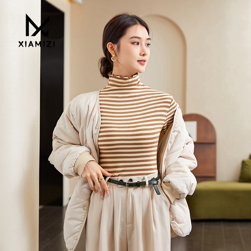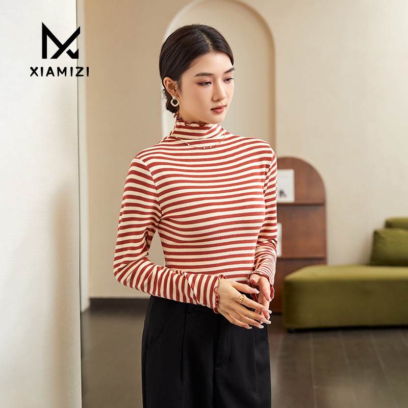 High-necked Sweater For Women Autumn And Winter Stylish Inner Striped Bottoming Shirt Women's Long-sleeved Slim Knitted Top