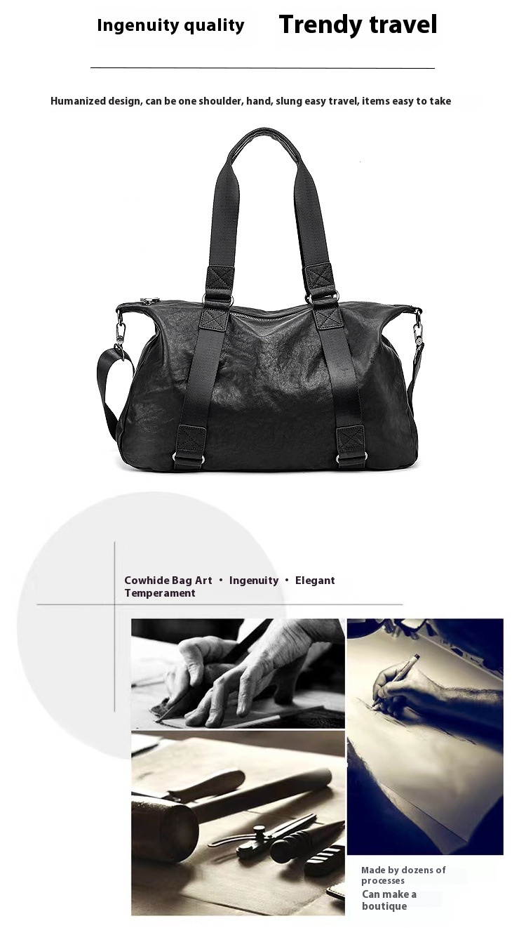 Men's Top Layer Vegetable Tanned Leather Handbags Casual Travel Bags Genuine Leather Men's Bags Men's Clothing Bags
