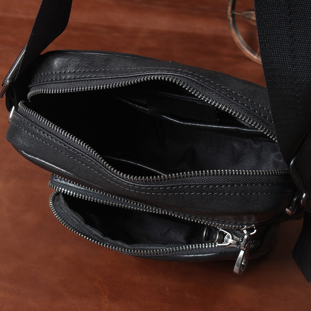 Waxed Canvas Chest Bag Men's Travel Crossbody Top Layer Cowhide Bag