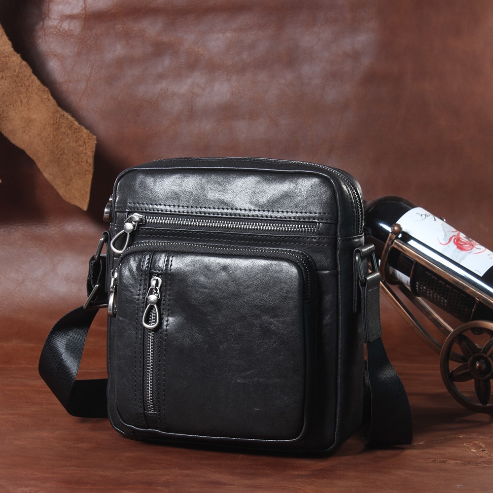 Men's Genuine Leather Shoulder Bag First Layer Cowhide Korean Version Messenger Bag Boutique Vegetable Tanned Leather Vertical Men's Backpack