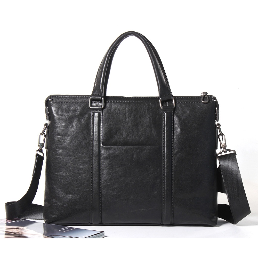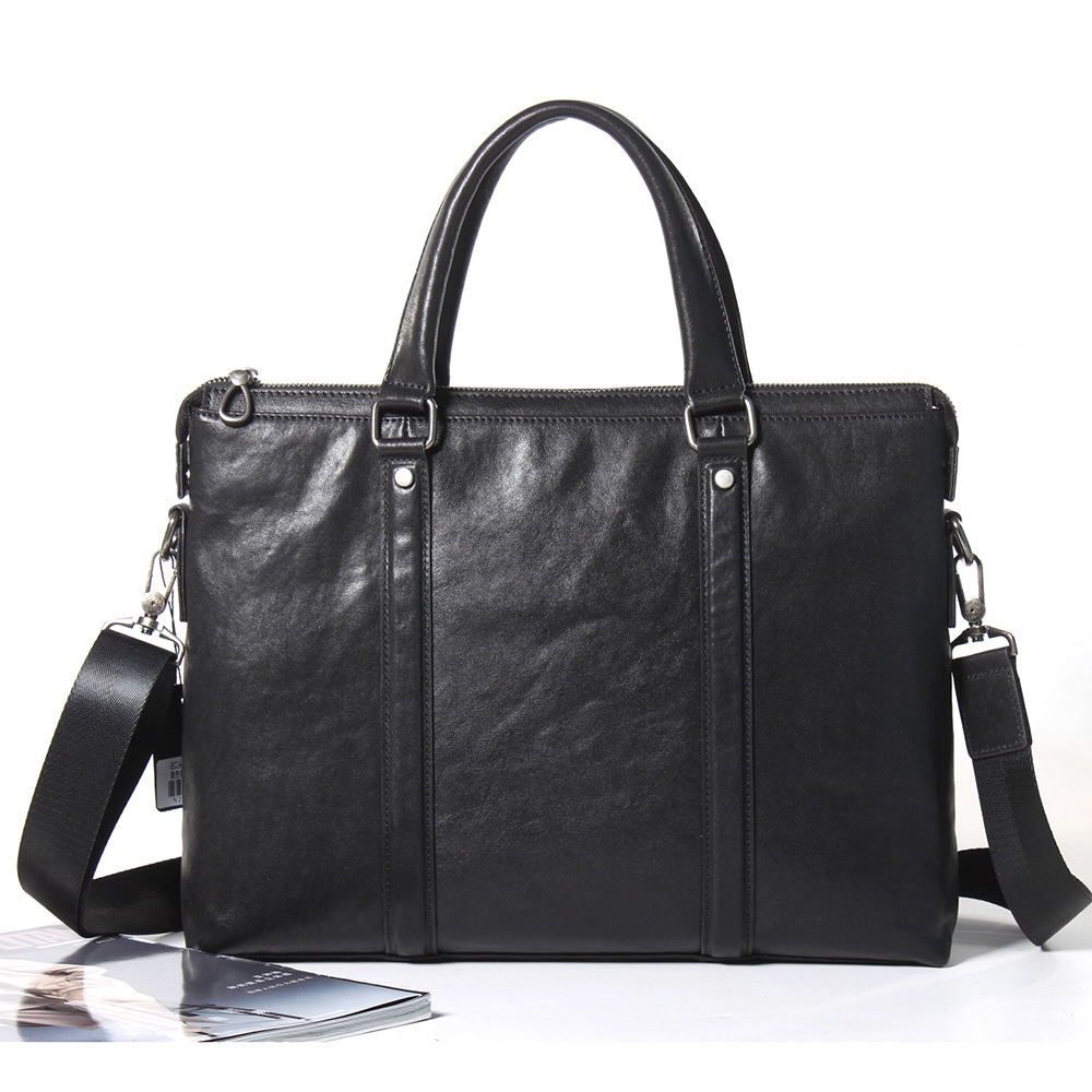 Men's Genuine Leather14 Inch Computer Bag Men's Handbag Cowhide Business Large Capacity Briefcase Gift One Piece Drop Shipping