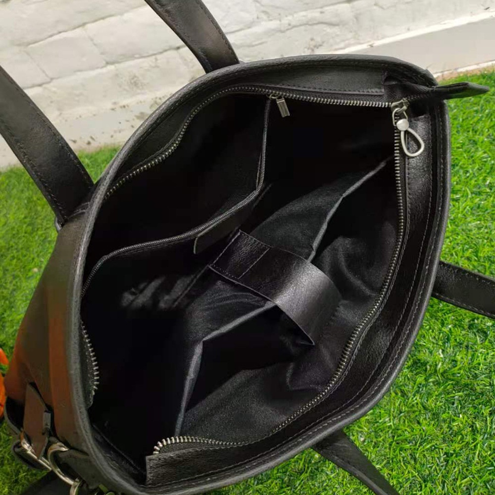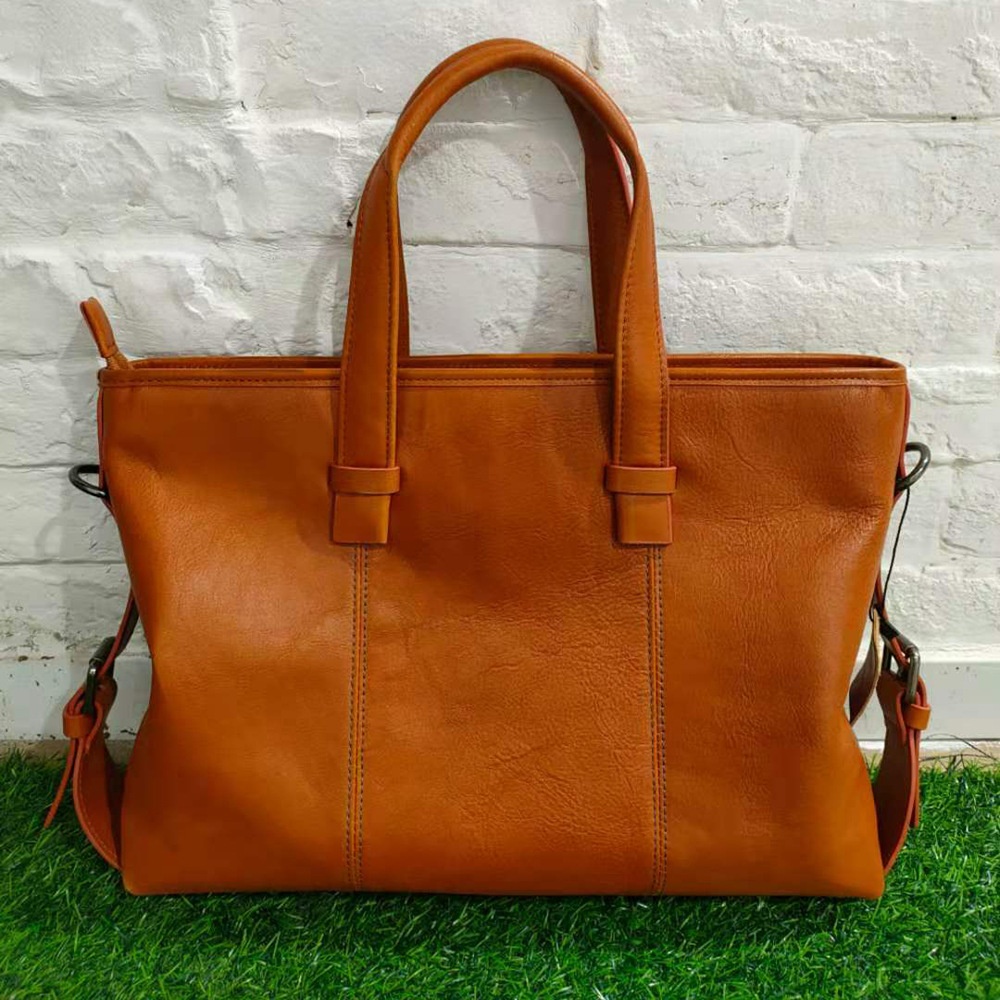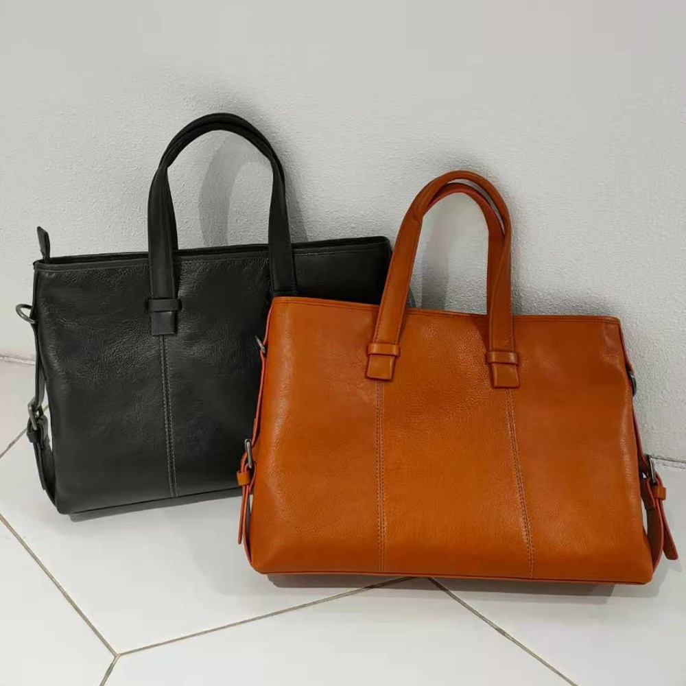 Casual Fashion Men's Portable Briefcase First Layer Cowhide Black Tree Paste Leather Large Capacity Shoulder Bag