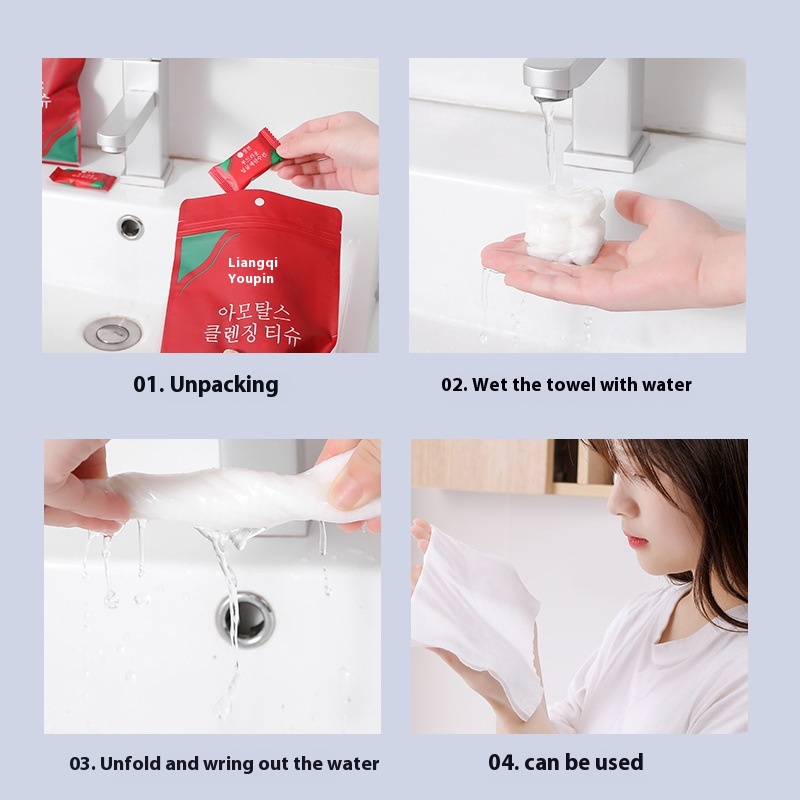 Liangqi Youpin Compressed Towel Travel Size Disposable Face Wash Towel Portable Pure Cotton Thick Cleansing Small Square Towel