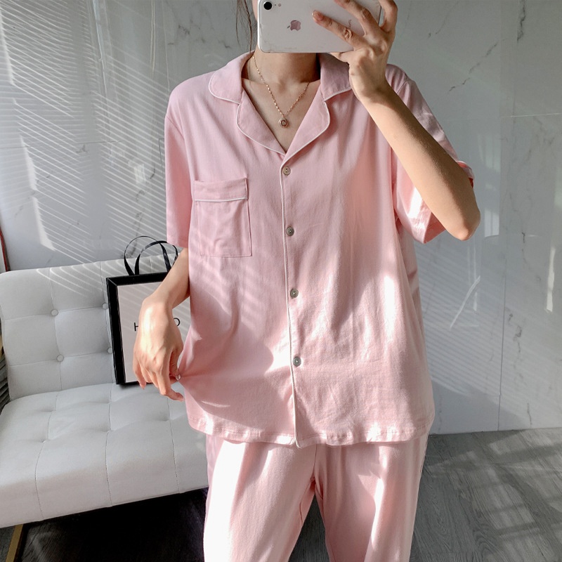 Summer Couple Pajamas Loose And Comfortable Soft Cotton Short-sleeved Trousers Two-piece Home Clothes Suit