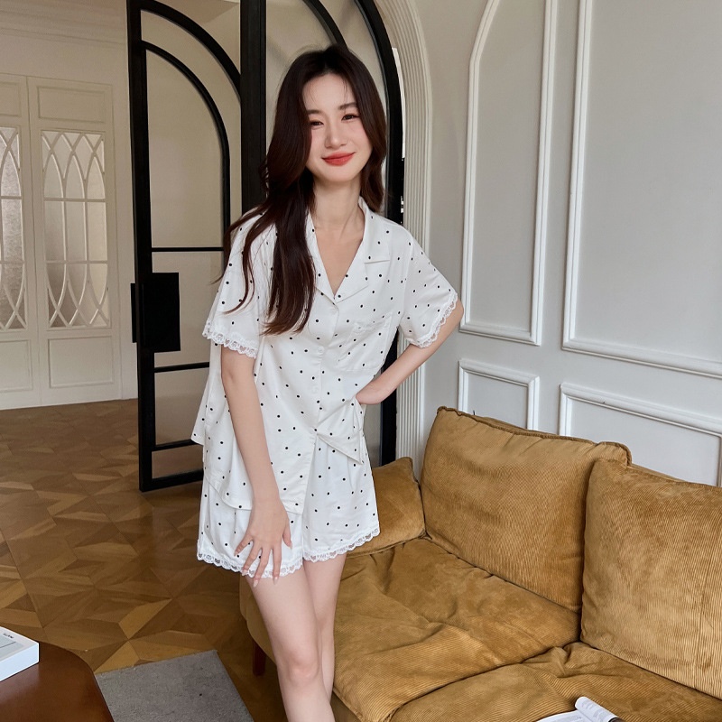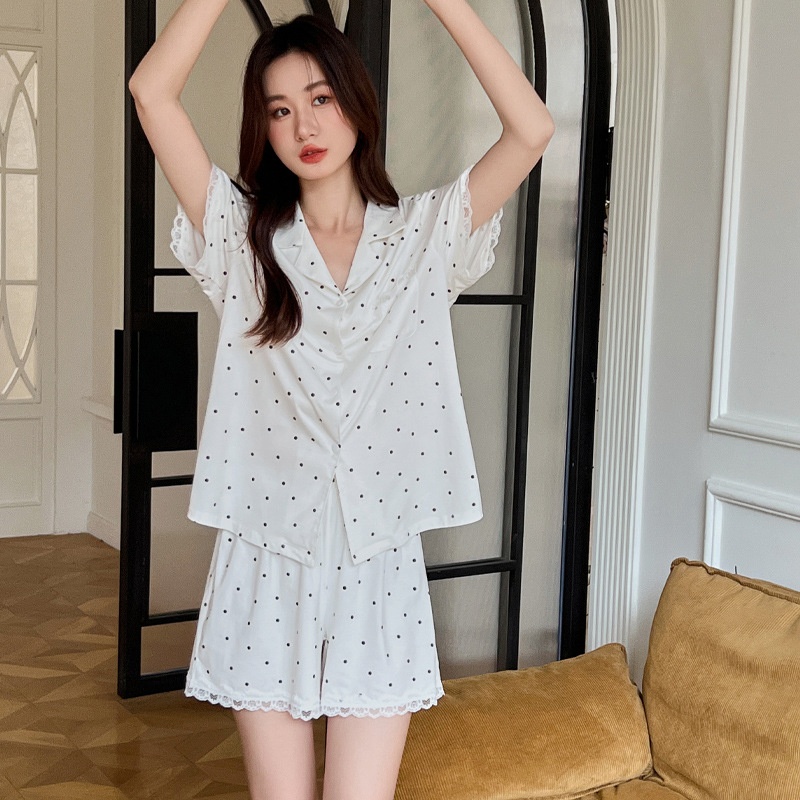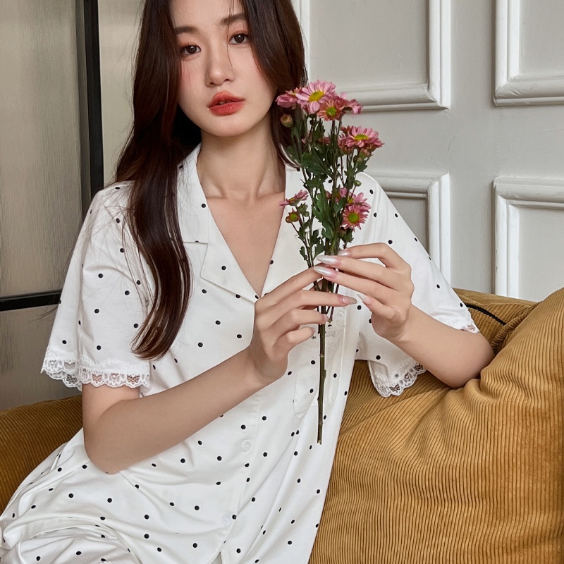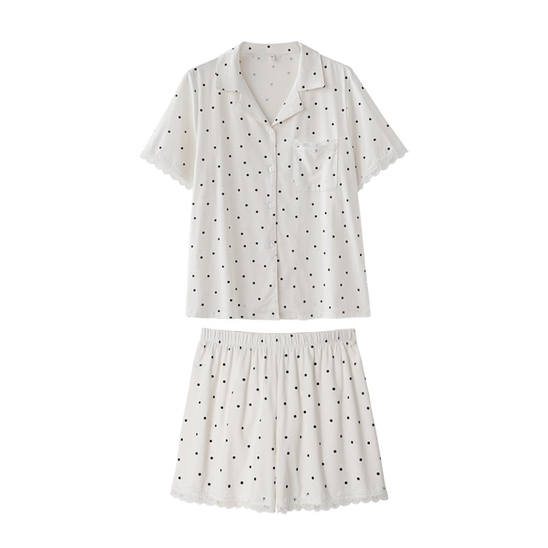 Simple Pajamas For Women In Summer,Soft Cotton Polka Dot Short-sleeved Shorts,Home Clothes,Thin Suits,Can Be Worn Outside