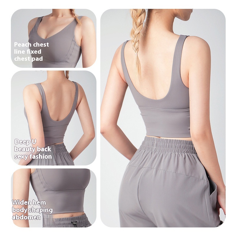 One-piece Sports Bra For Women With Fixed Chest Pads For Shockproof Gathering Yoga Vest For Outdoor Use Running Fitness Bra Large Size
